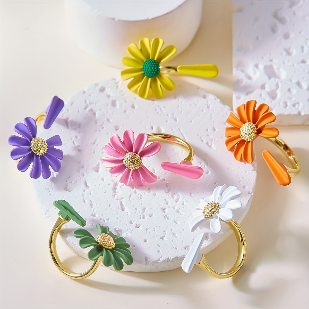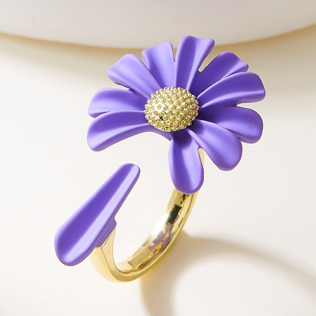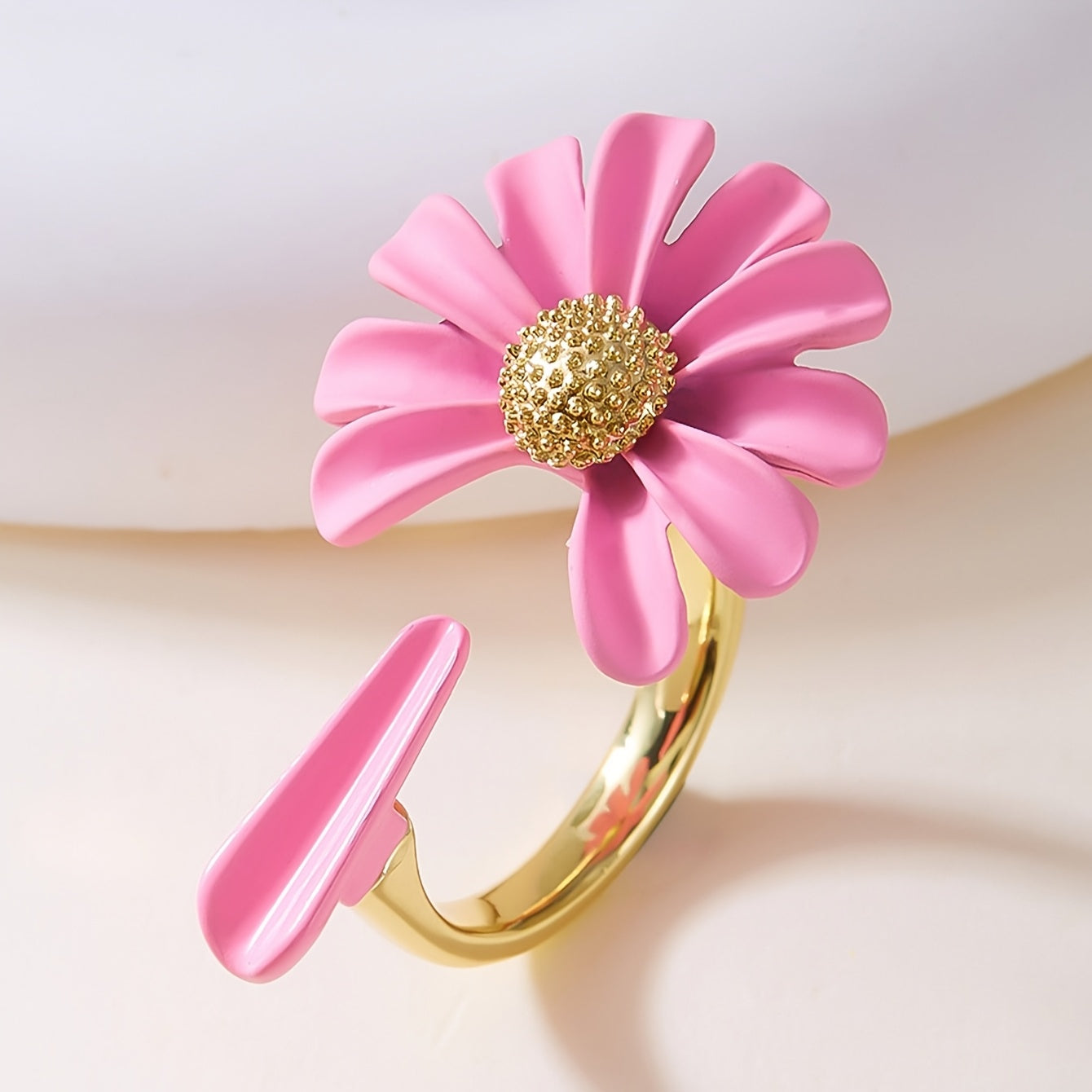 Elevate your style with this 18K golden plated daisy ring. It's a versatile piece suitable for daily wear and parties, featuring a rustic charm design. The open-ended statement ring adds a touch of elegance to any outfit.