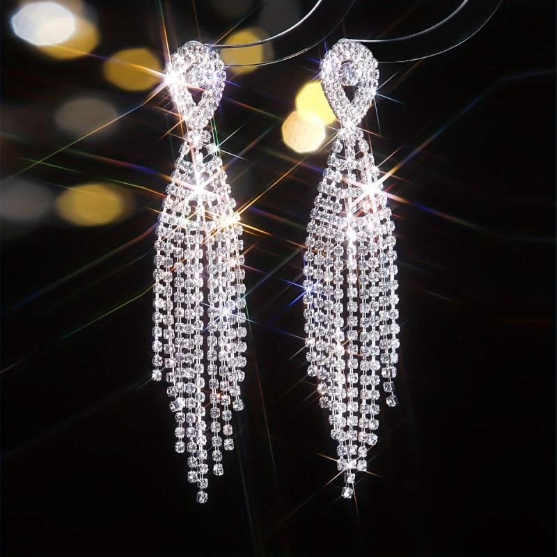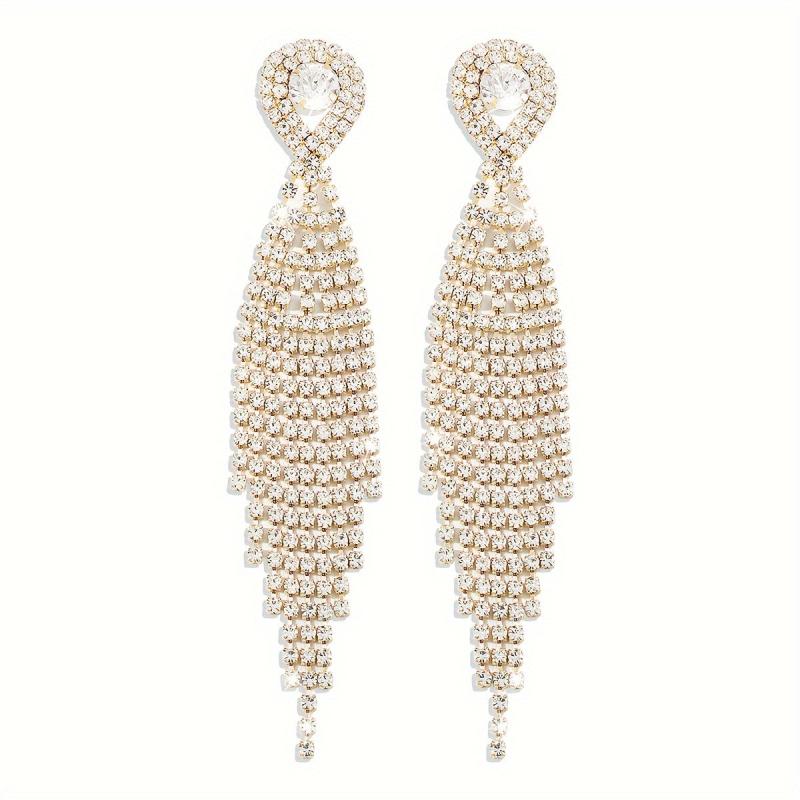 Dangle Earrings Rhinestone Tassel Golden or Silvery Wedding Jewelry
