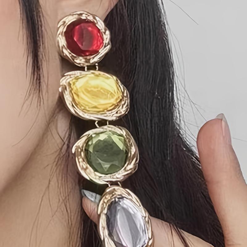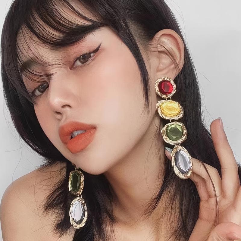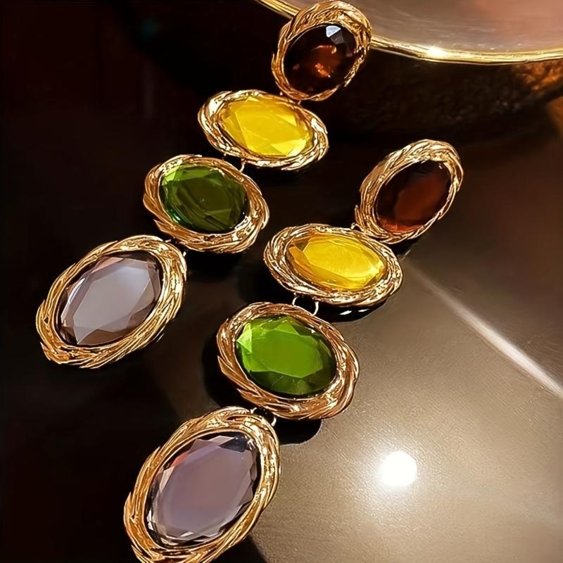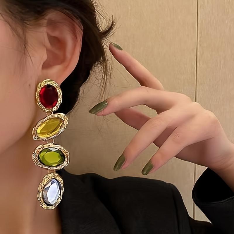 Add a touch of elegance to your outfits with these fashionable dangle earrings inlaid with waterish gemstones. Perfect for daily wear or to accessorize your party looks.
