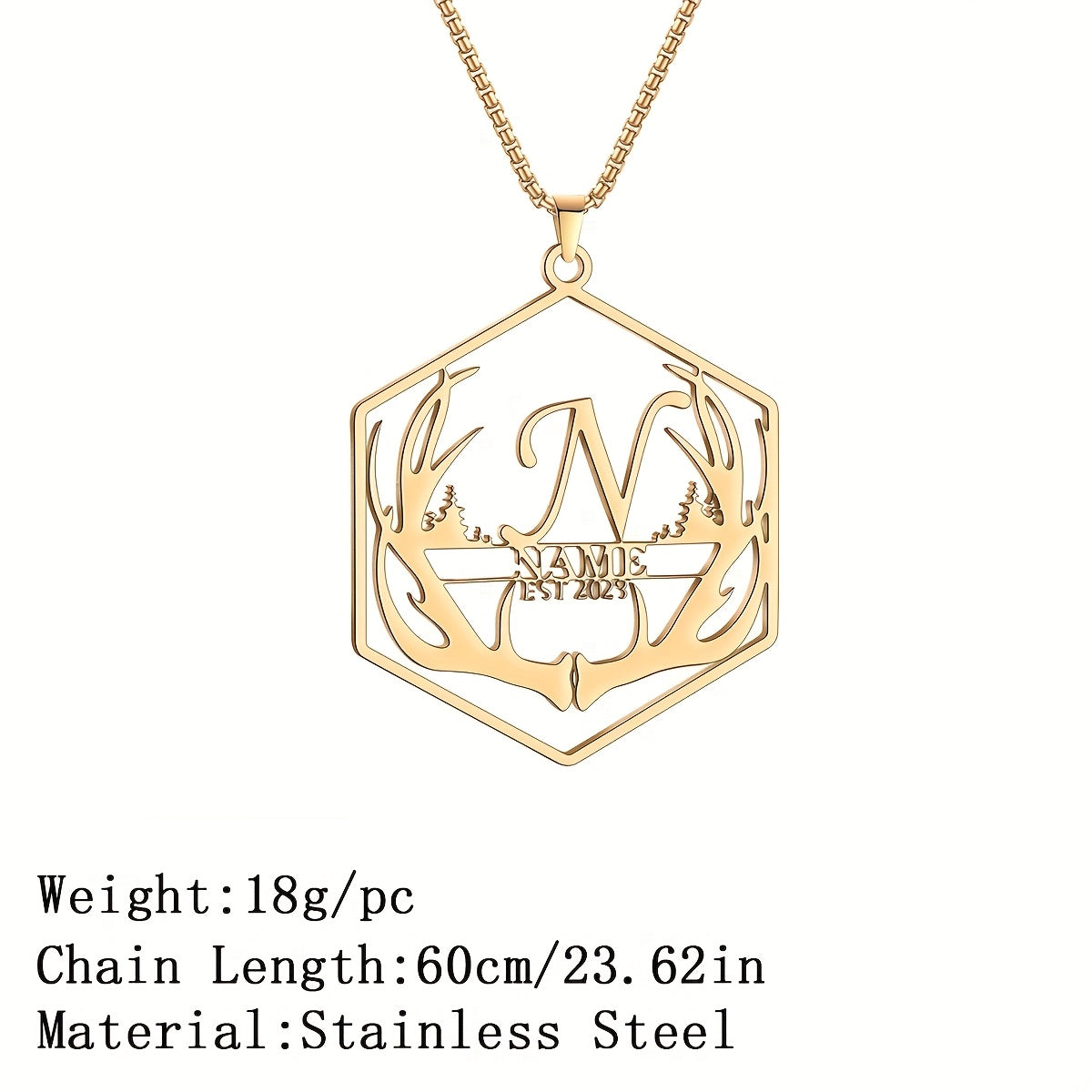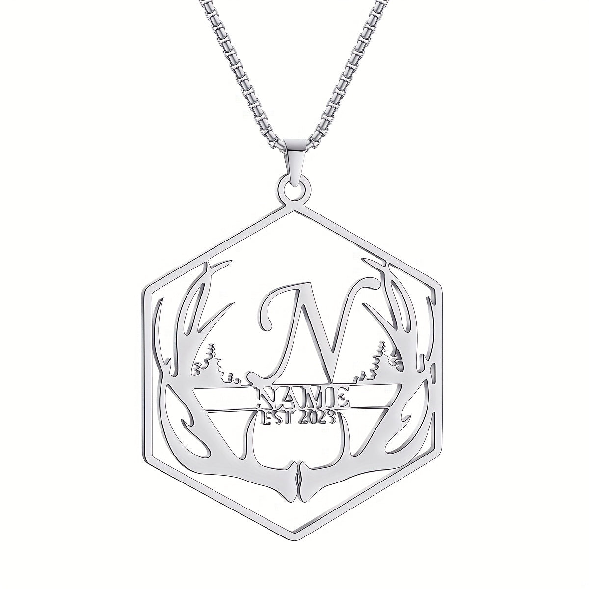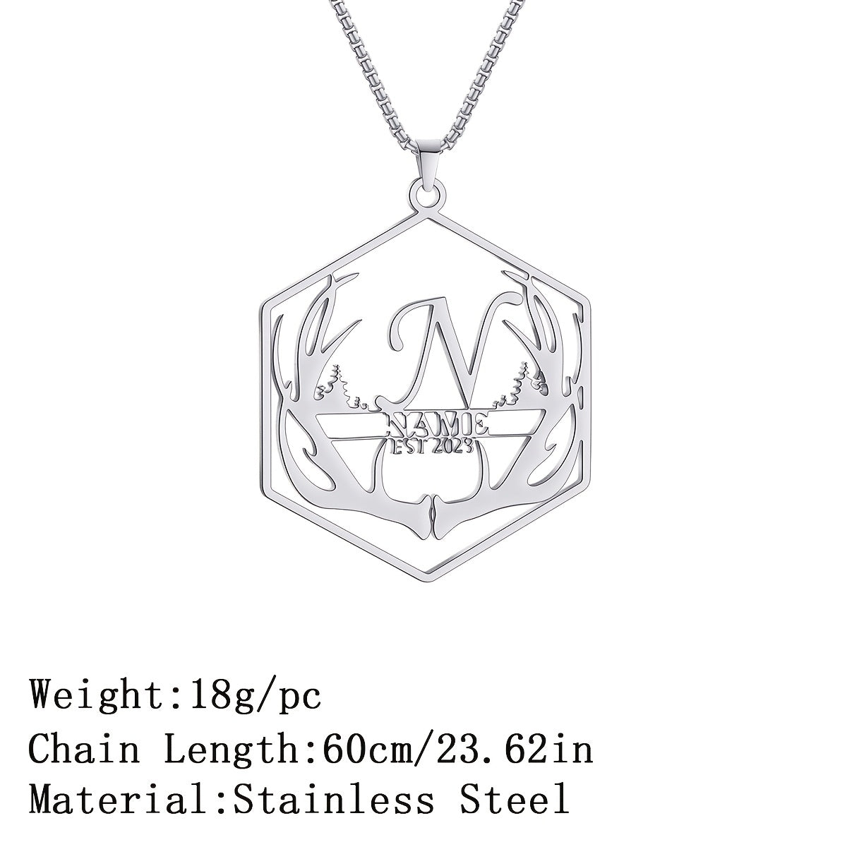 Bring a touch of nature-inspired style with this stainless steel pendant necklace featuring deer antlers in a unique hexagon design.