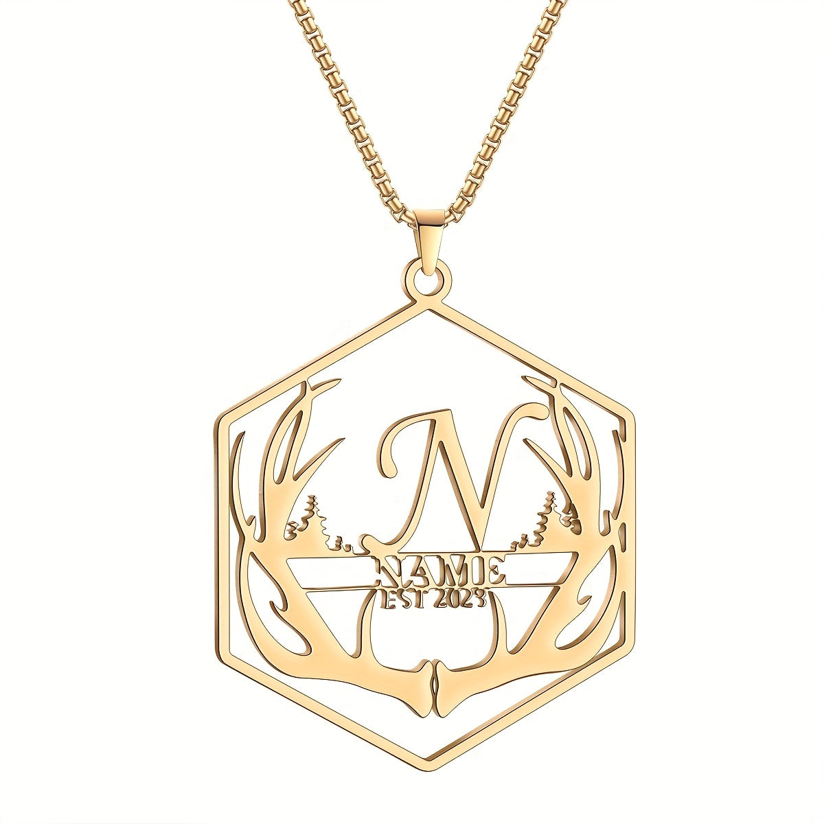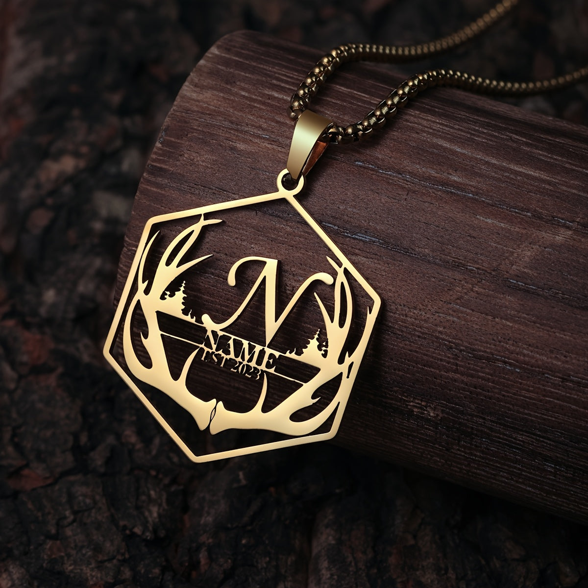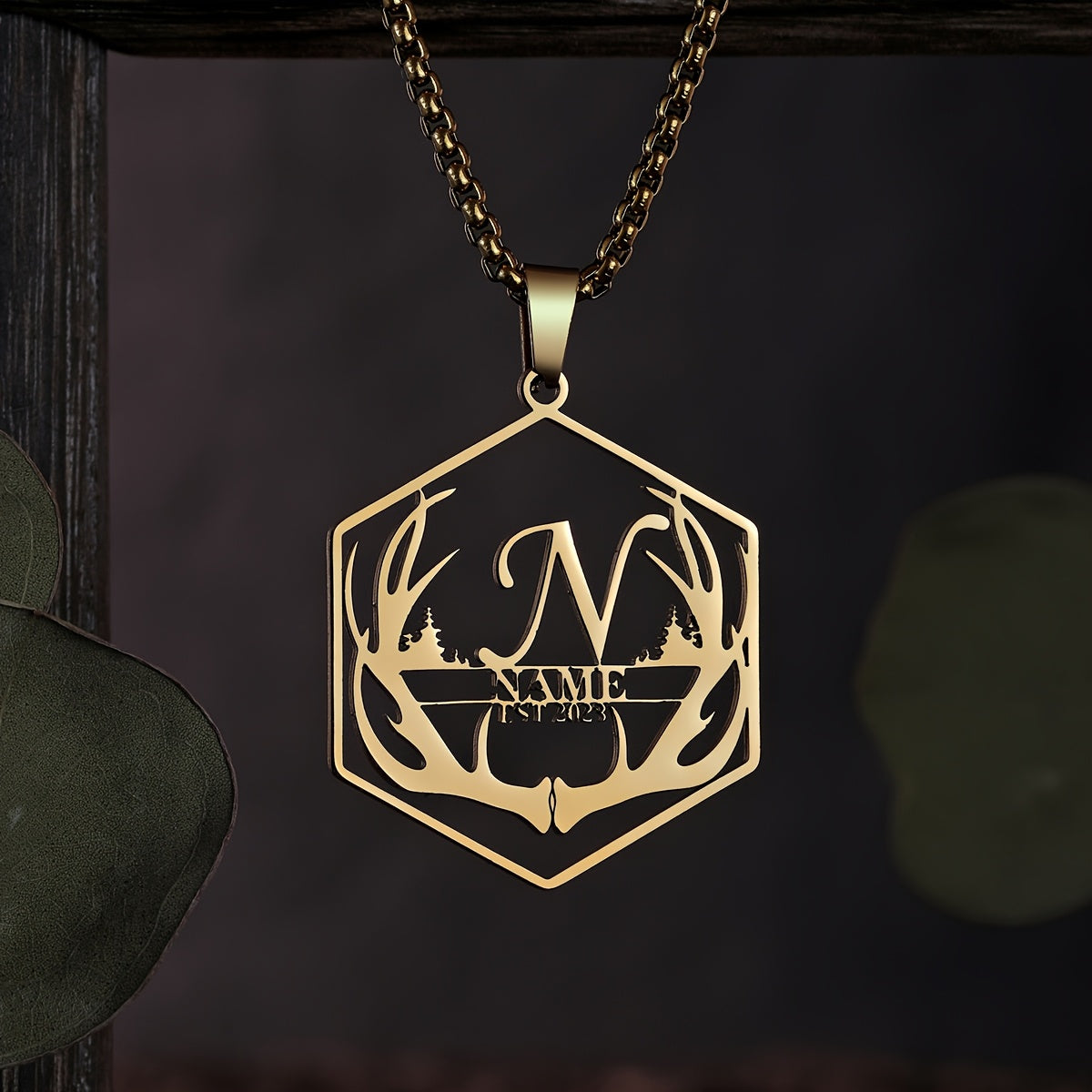 Bring a touch of nature-inspired style with this stainless steel pendant necklace featuring deer antlers in a unique hexagon design.