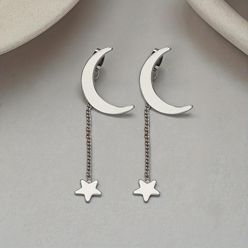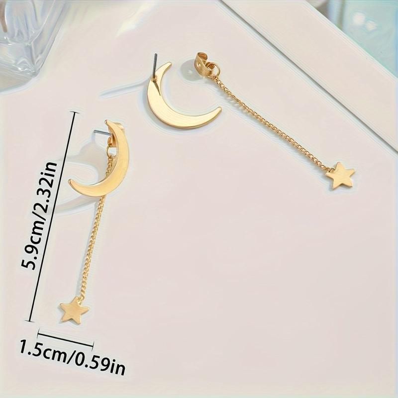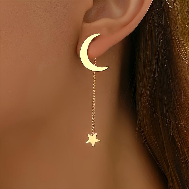 Add a touch of celestial charm to your look with these earrings featuring detachable stars and moons. Perfect for everyday wear or special occasions.