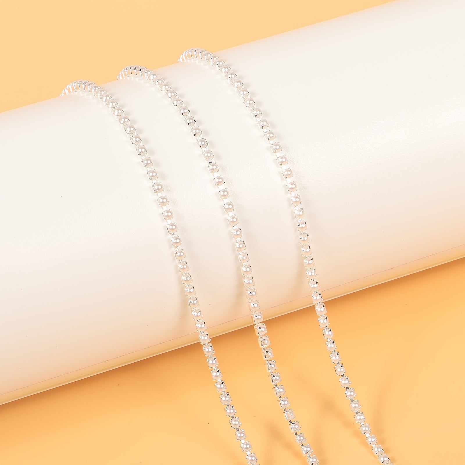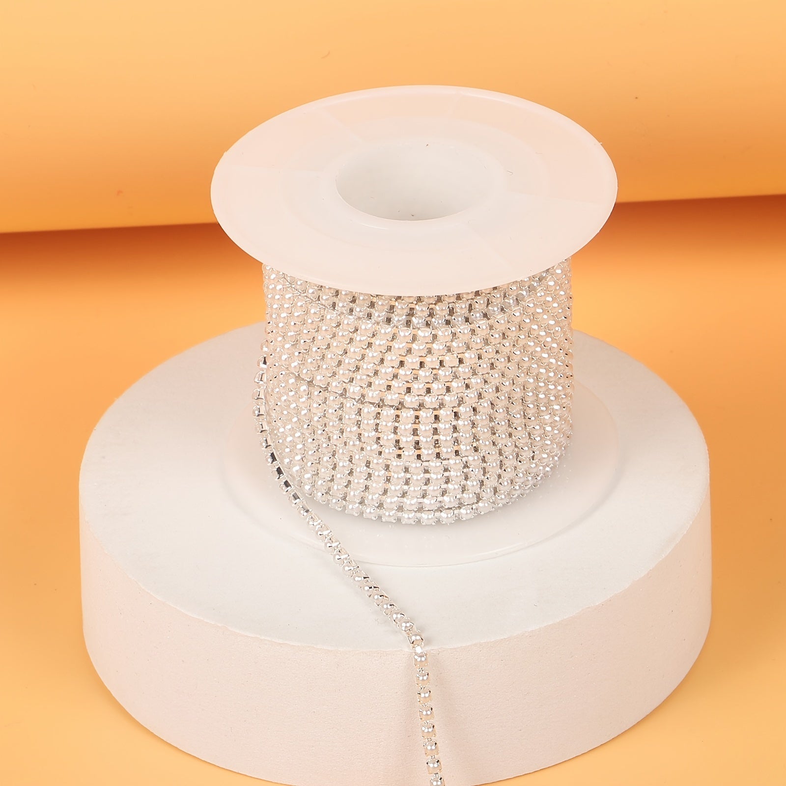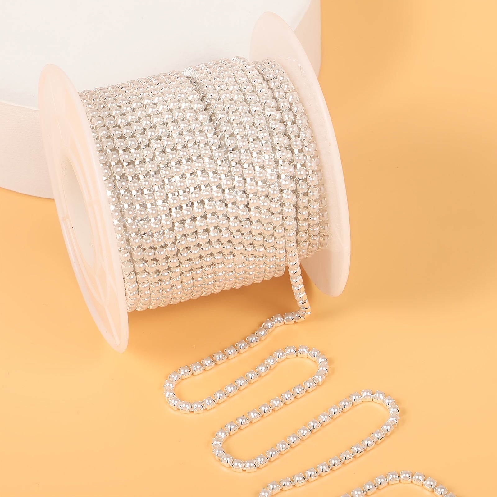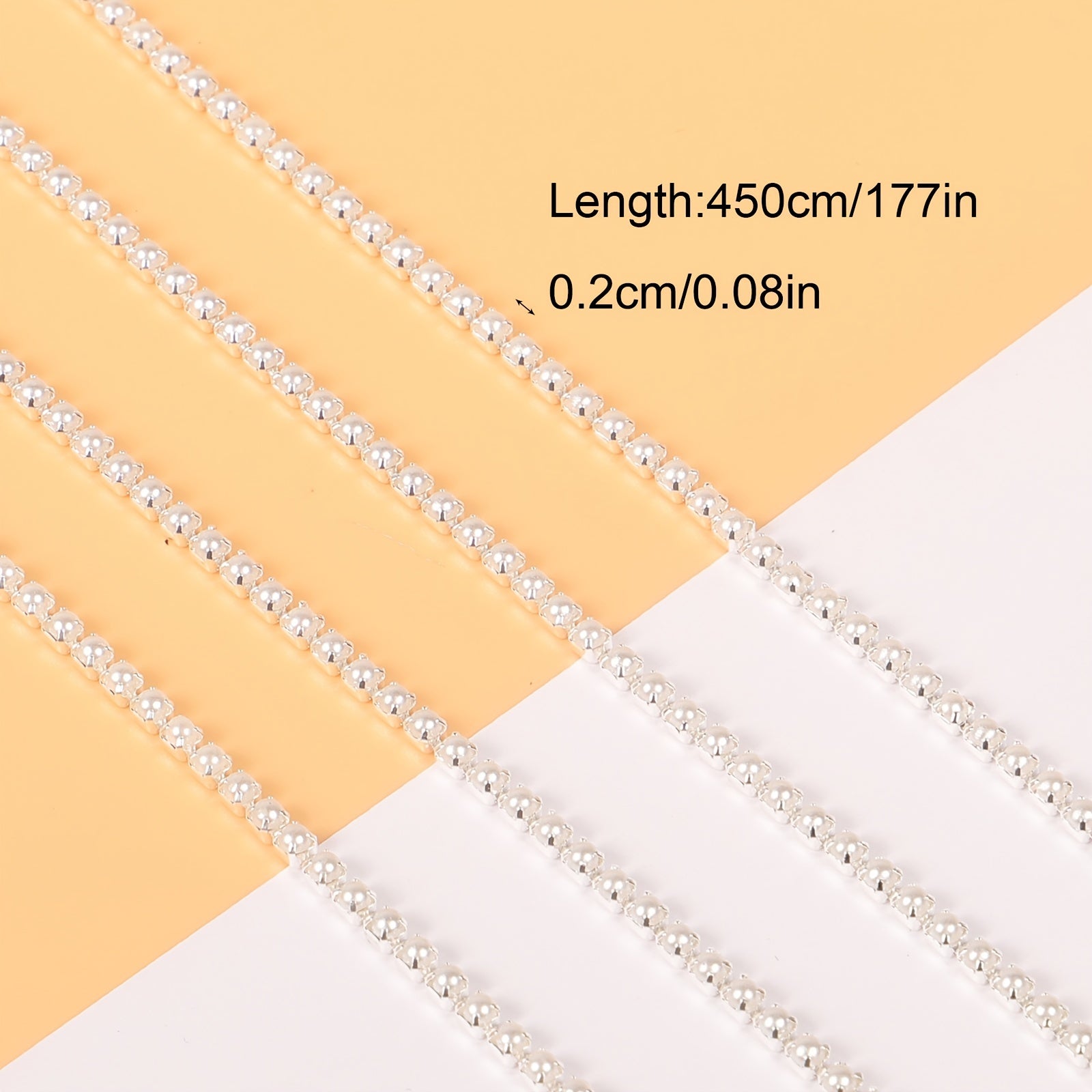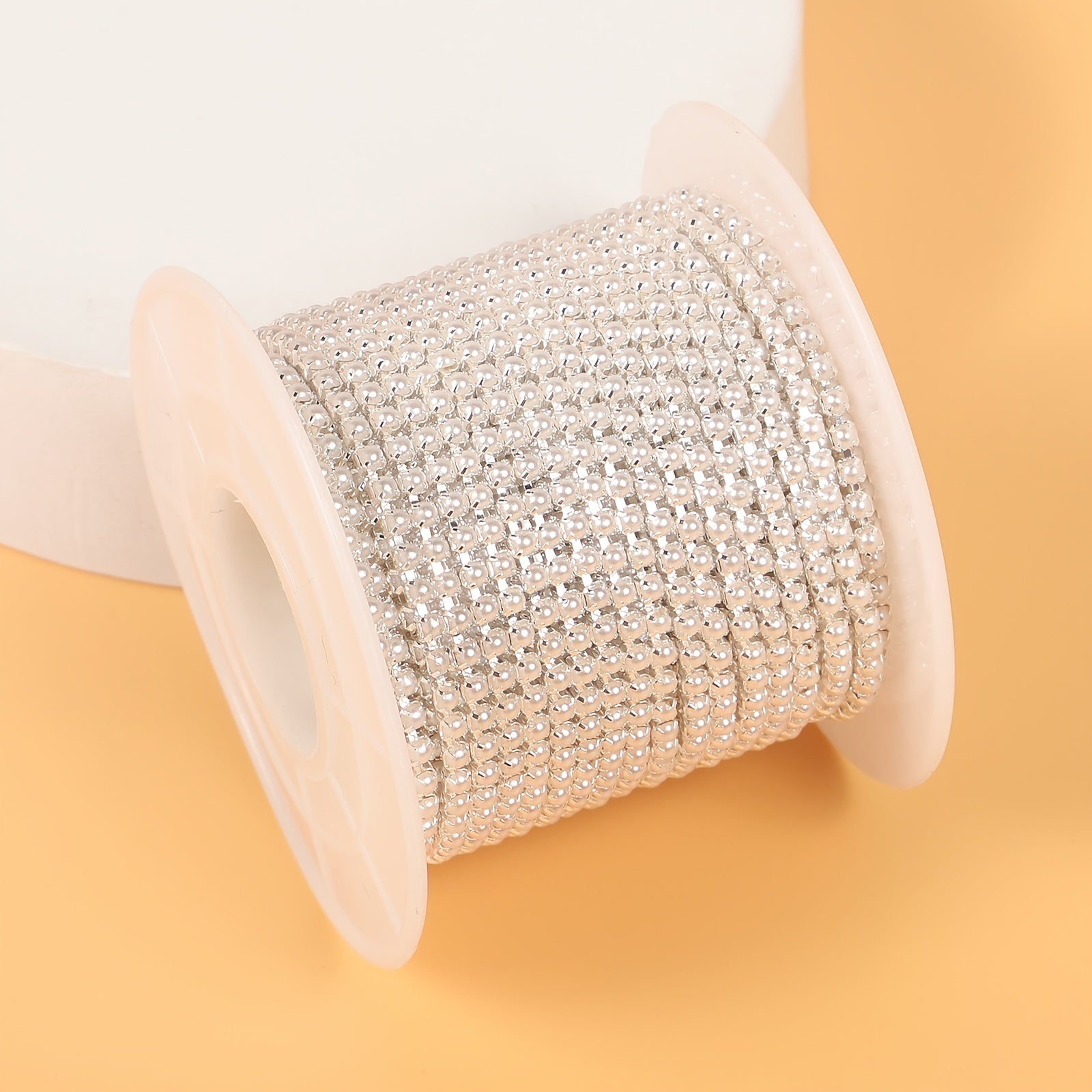 Elevate your DIY projects with this silver faux pearl chain that can be used for various decorations. Add a touch of elegance to your nails, shoes, clothing, water cups, mobile phone cases, and more.
