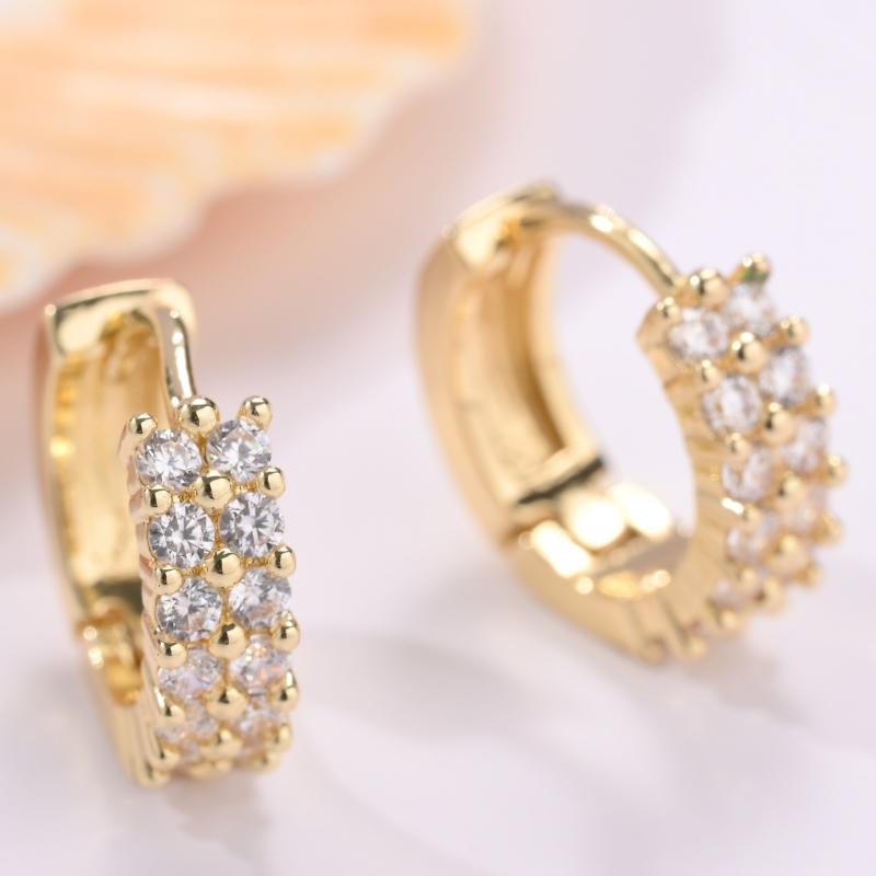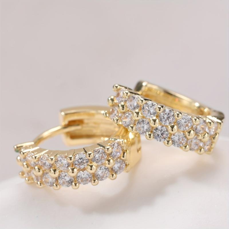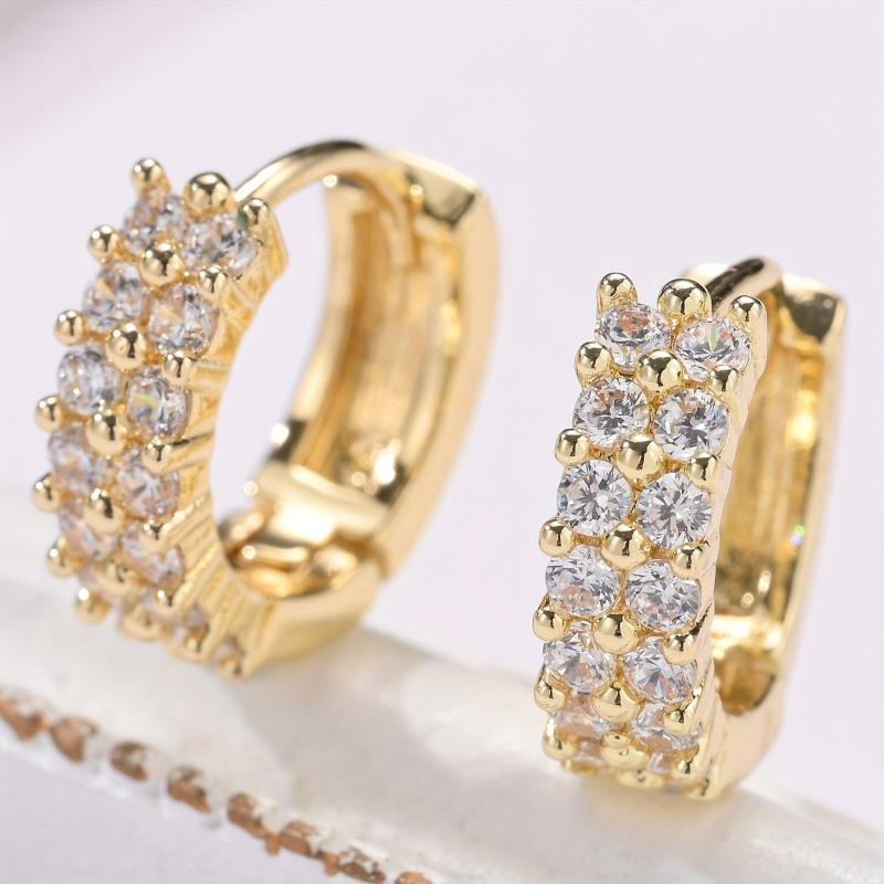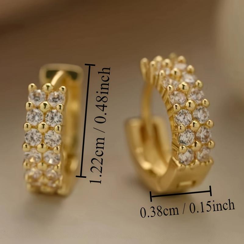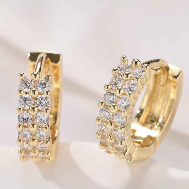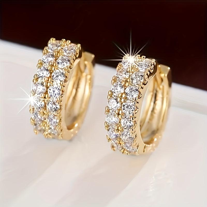 Elegant double row hoop earrings made of copper with 18K golden plating, adorned with sparkling zirconia. Perfect for adding style to your date night outfit.