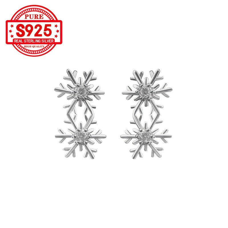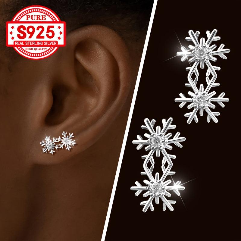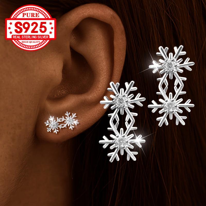 Add a touch of winter glam with these elegant earrings featuring two snowflake designs inlaid with synthetic zirconia. Crafted from top-quality S925 silver, these earrings are perfect for the holiday season.