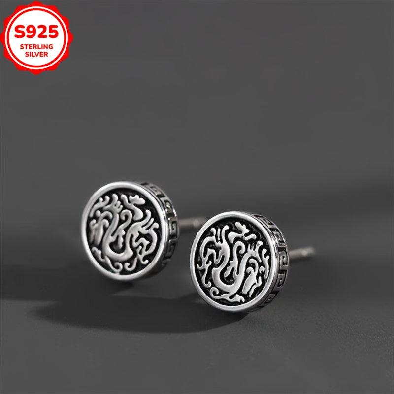 These hypoallergenic stud earrings feature a dragon pattern design in 925 sterling silver. Perfect for Mardi Gras or everyday wear.
