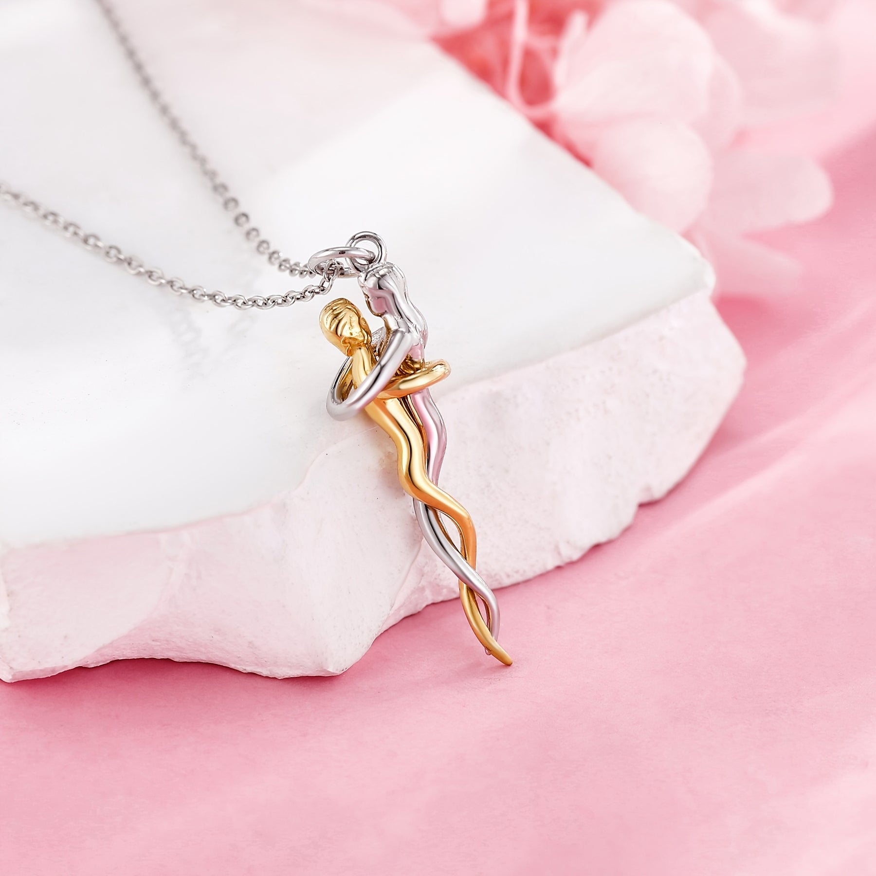 This elegant Embrace Couple Necklace is crafted from 925 sterling silver, making it the perfect gift for your loved one. The intertwined design symbolizes a deep connection and unity.