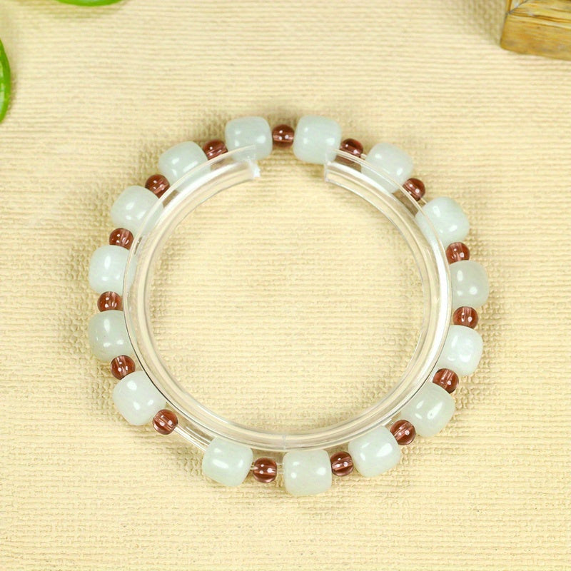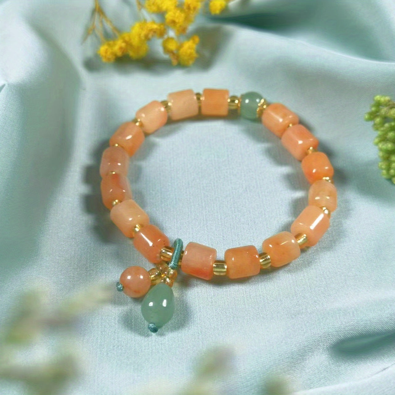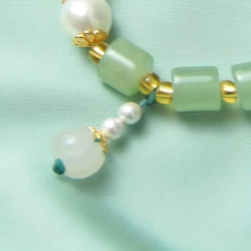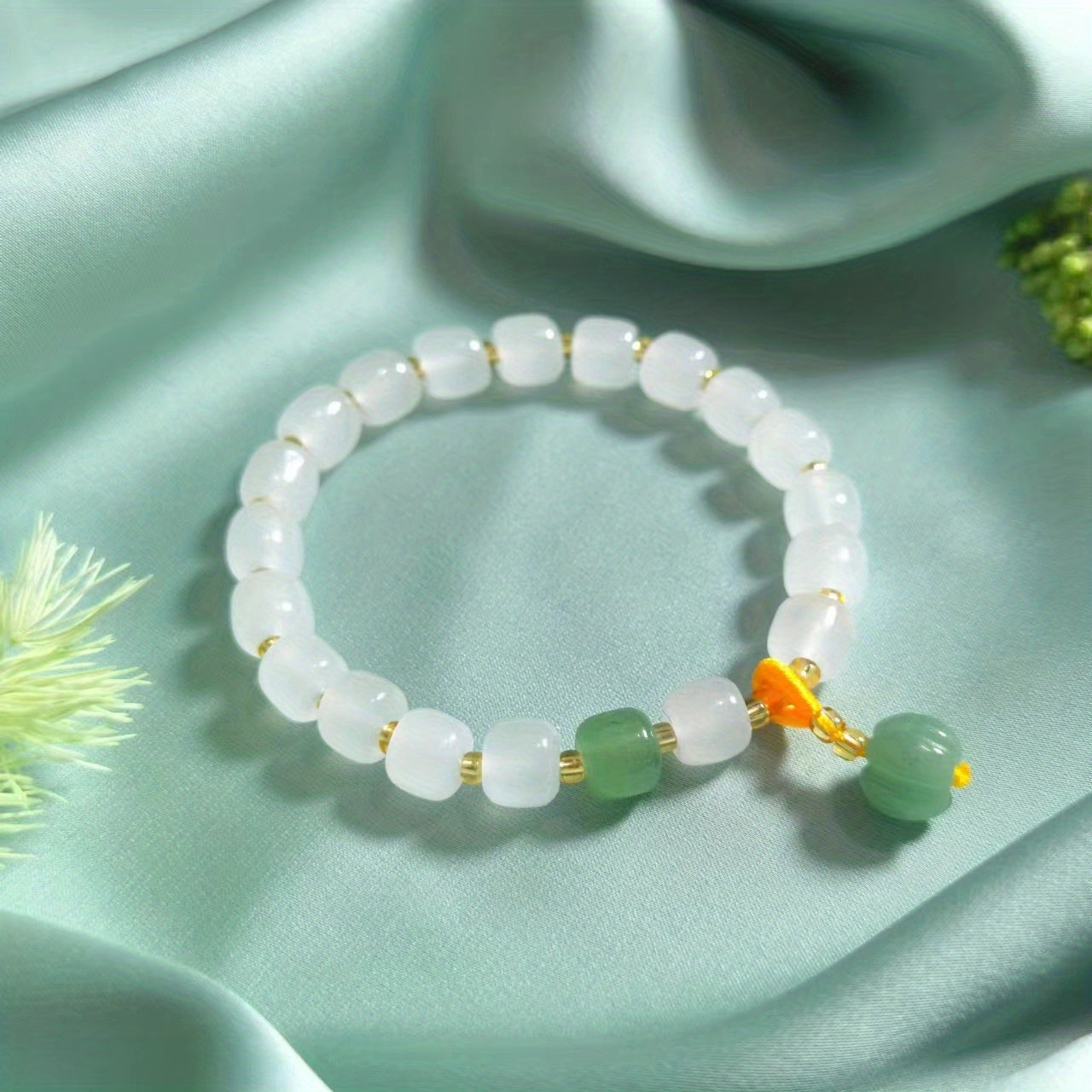 This elegant bracelet features emerald golden silk jade beads on a bamboo string, perfect for both men and women.
