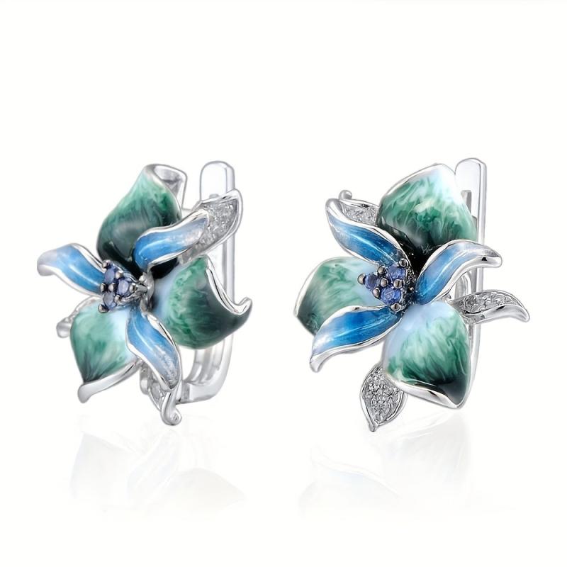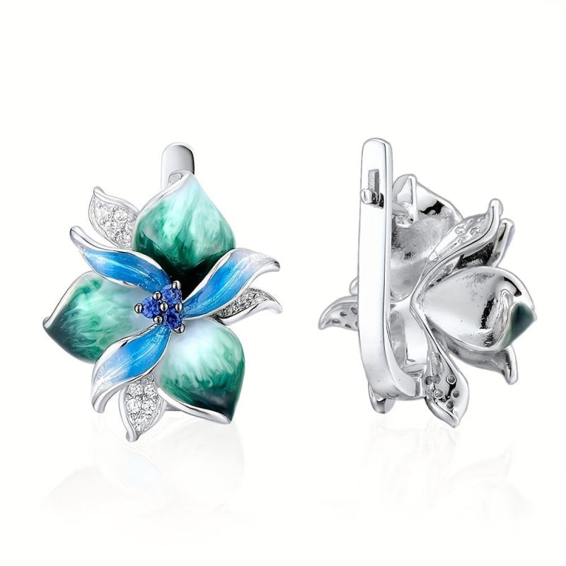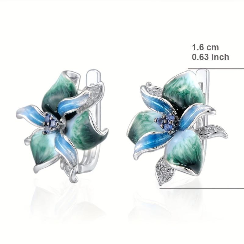 Enamel Flower Earrings Set with Zirconia for Daily Wear and Vacation