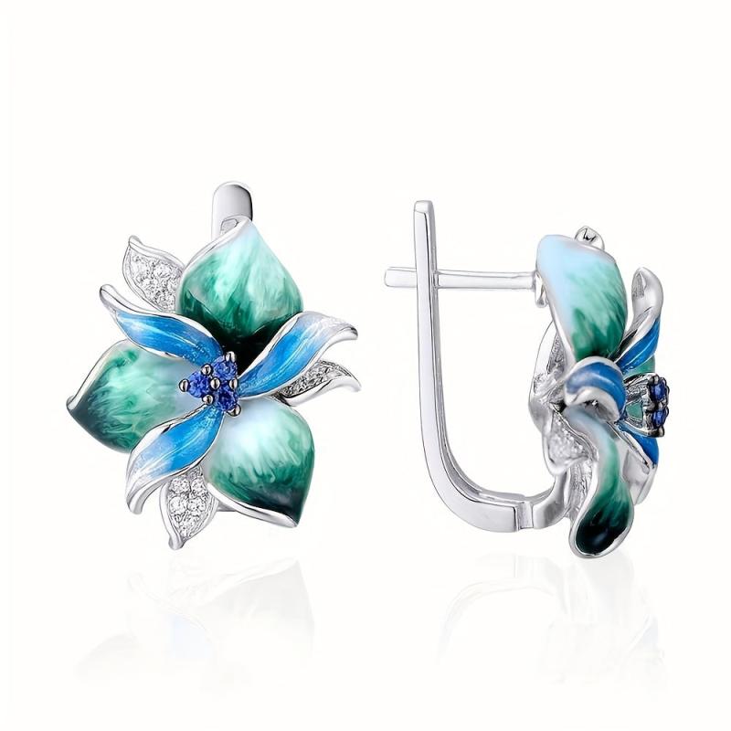 Add a pop of color to your outfit with these enamel large flower earrings featuring synthetic zirconia. Perfect for daily wear or vacation jewelry.