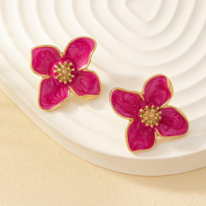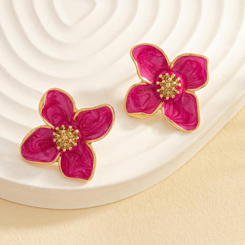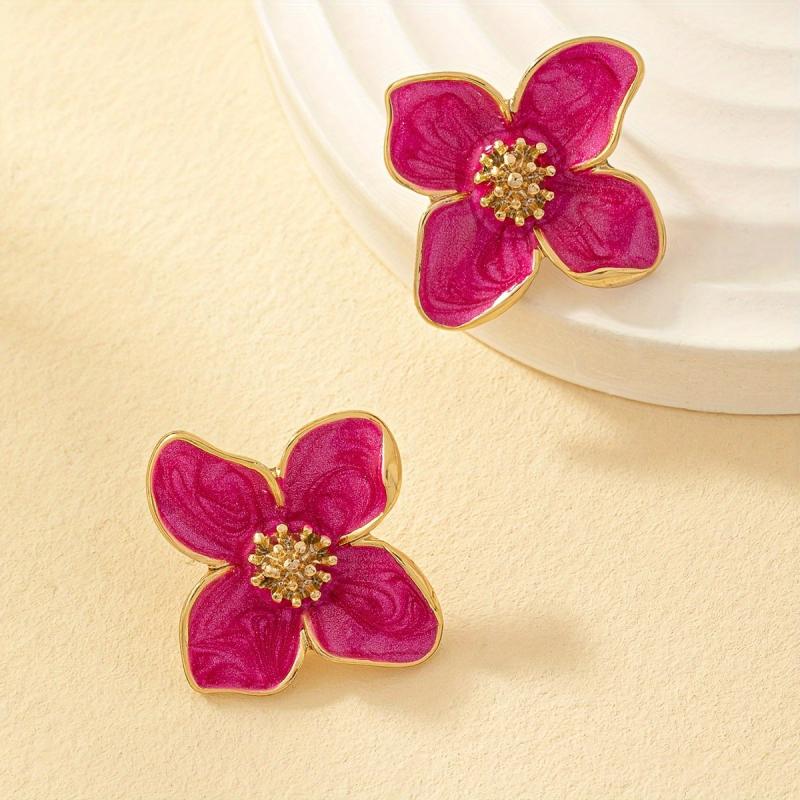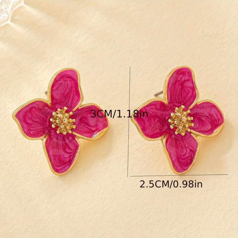 Add a touch of glamour to your daily and holiday outfits with these fashionable enamel flower stud earrings. Made of high-quality zinc alloy with iron post, these earrings are perfect for wearing in all seasons.