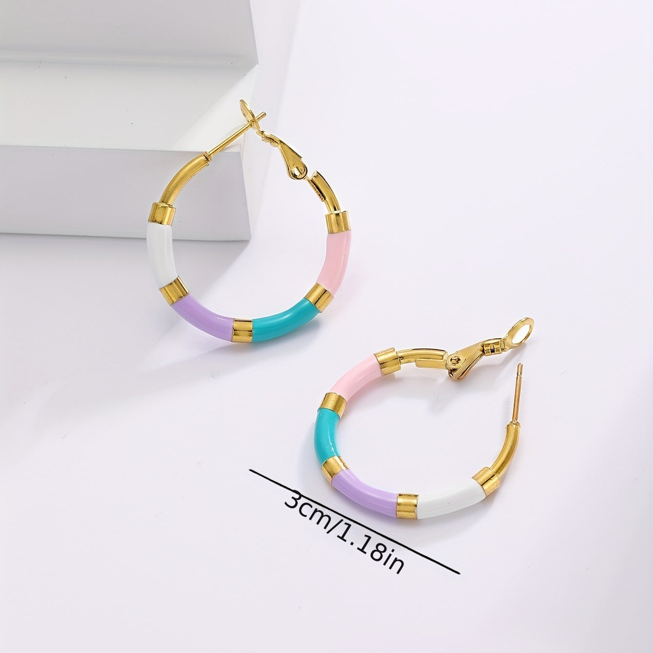 Enamel Hoop Earrings Stainless Steel 18K Plated Jewelry