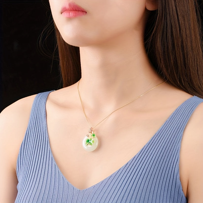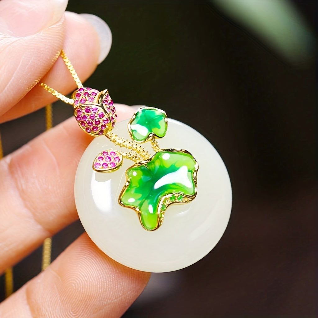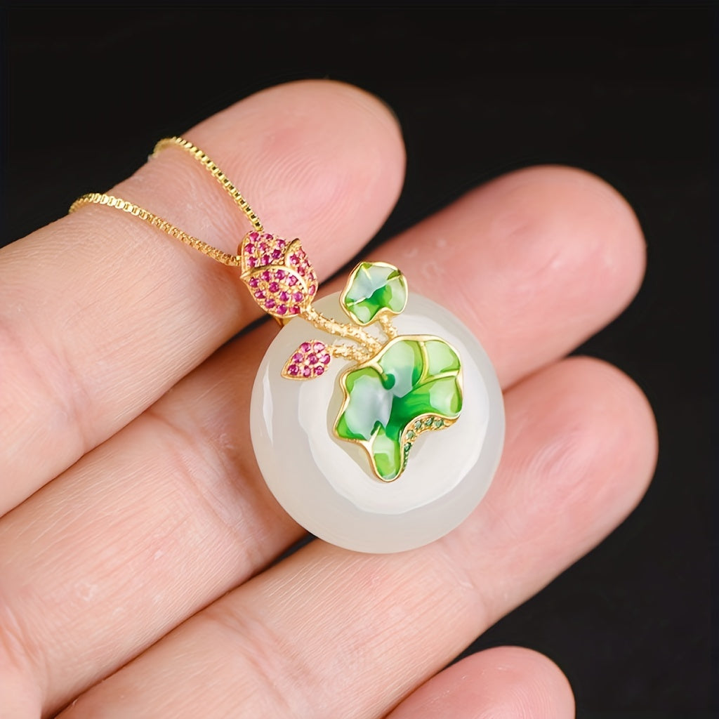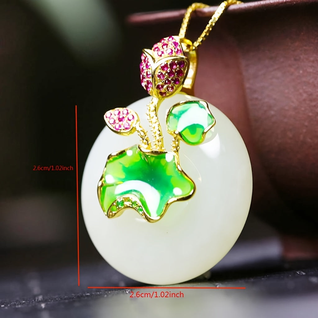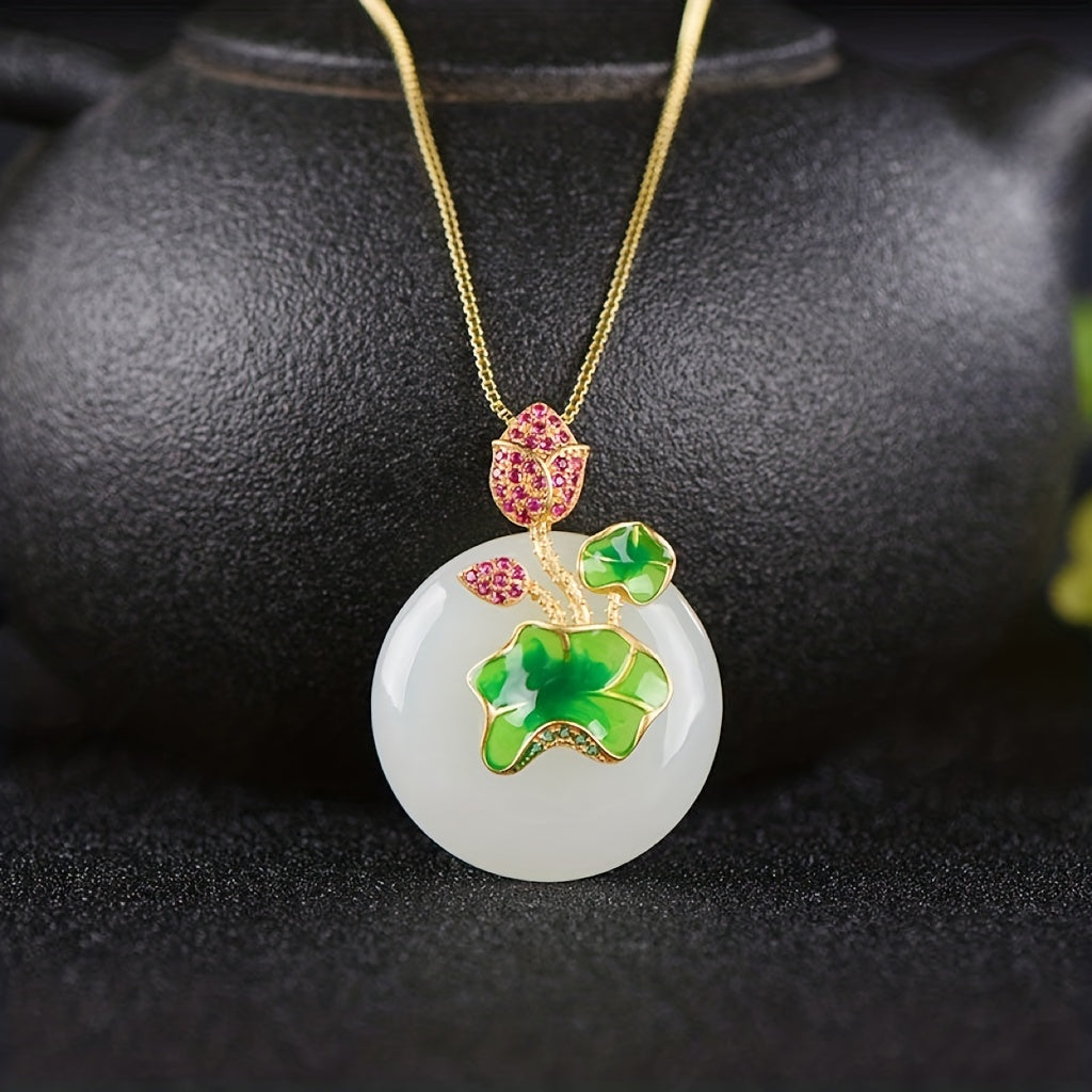 Add a touch of elegance with this stunning enamel lotus jade pendant necklace. Featuring rhinestone decor, this piece is a must-have for fashionable jewelry lovers.