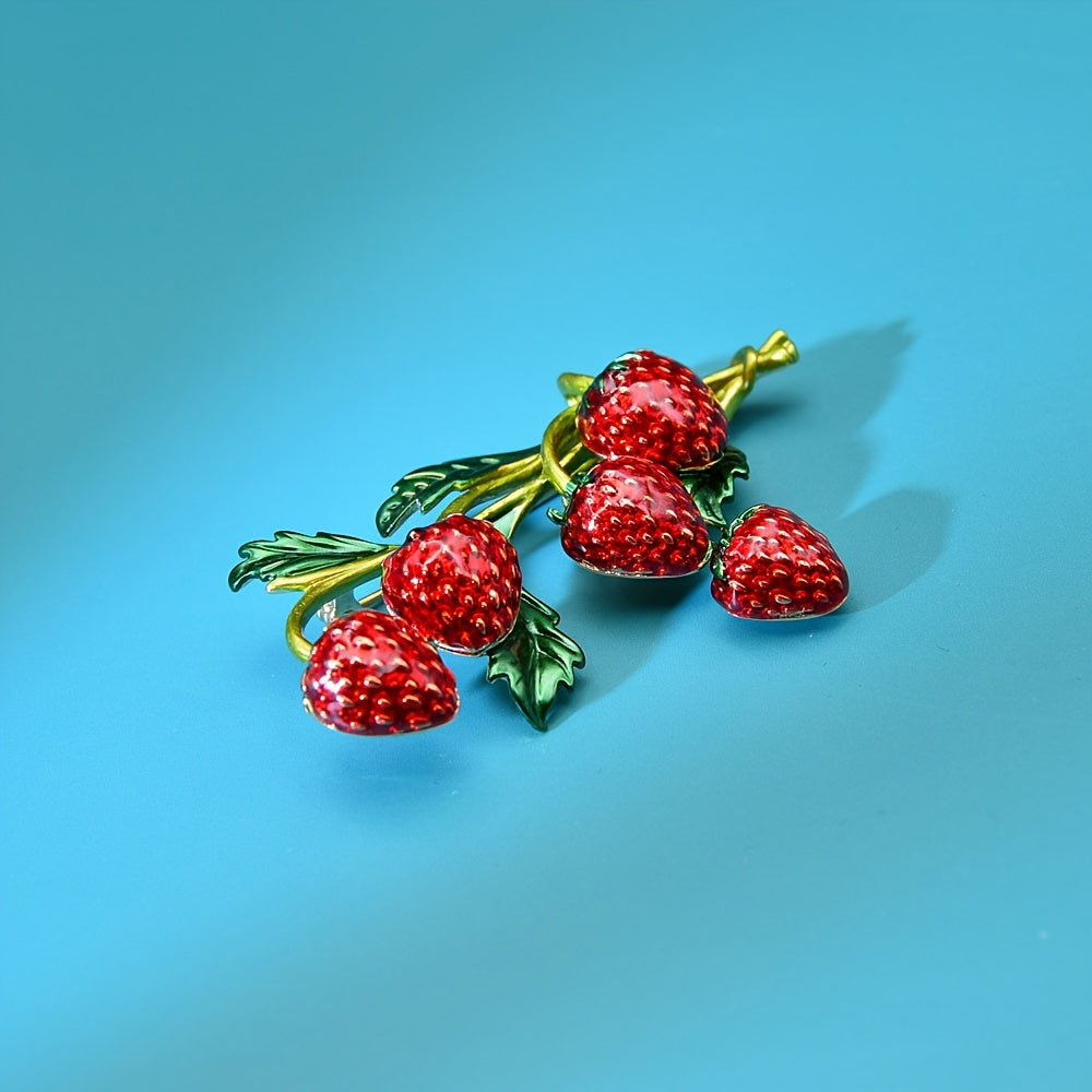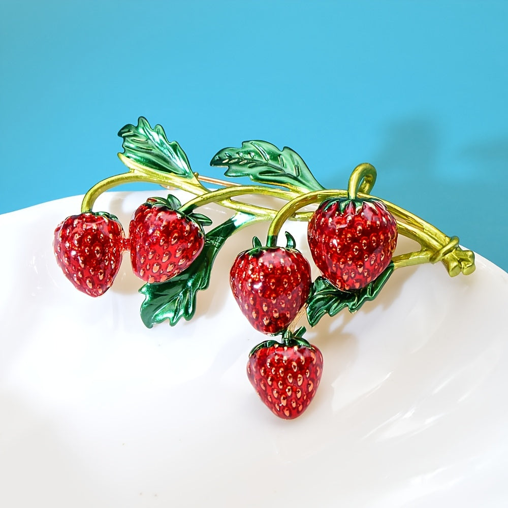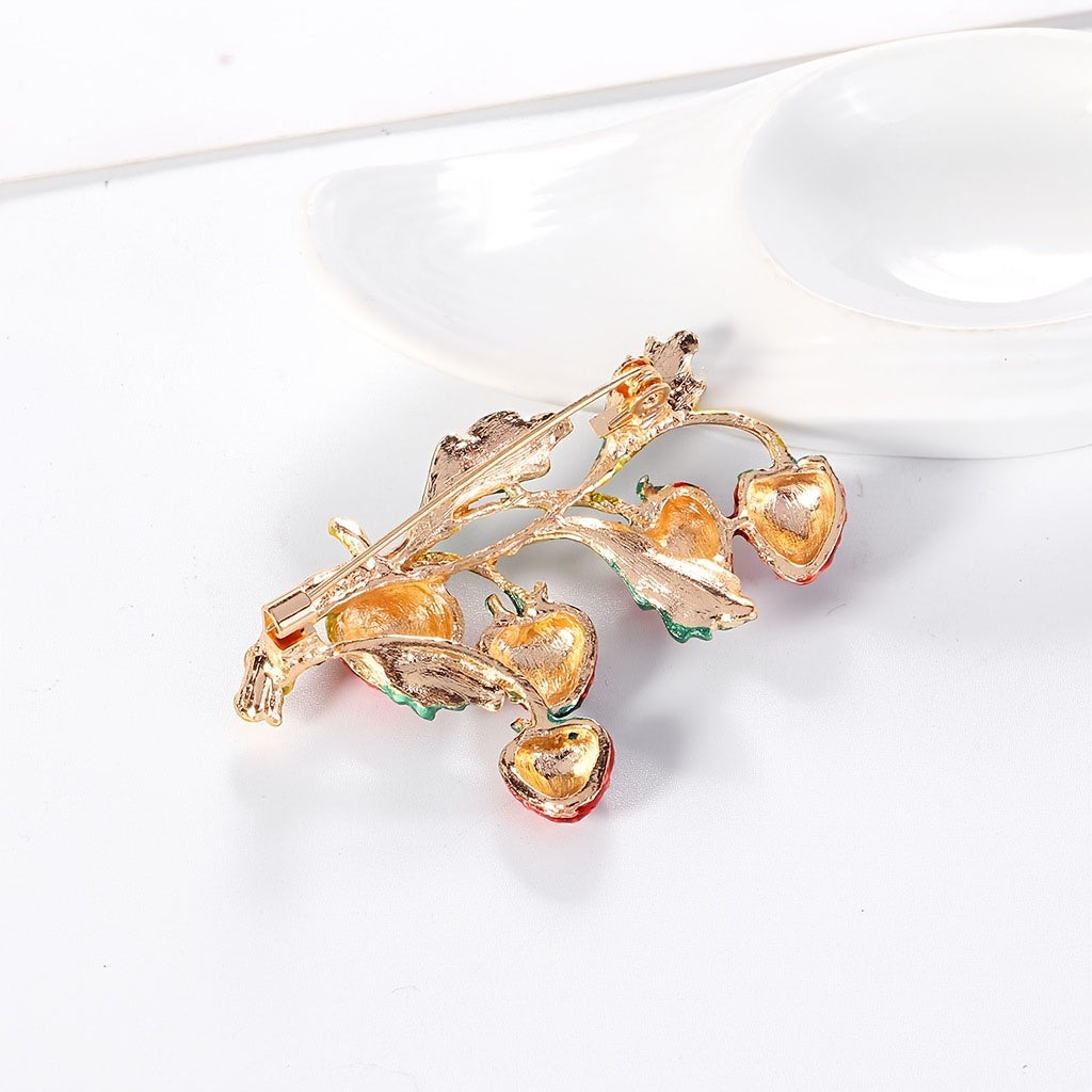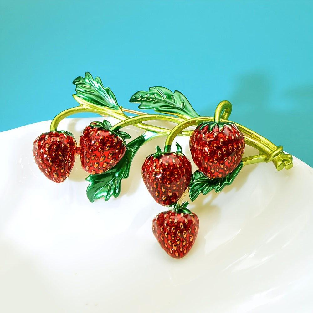 Enamel Strawberry Red Fruit Brooches Pins Corsage Scarf Clips Safety Pin Women G