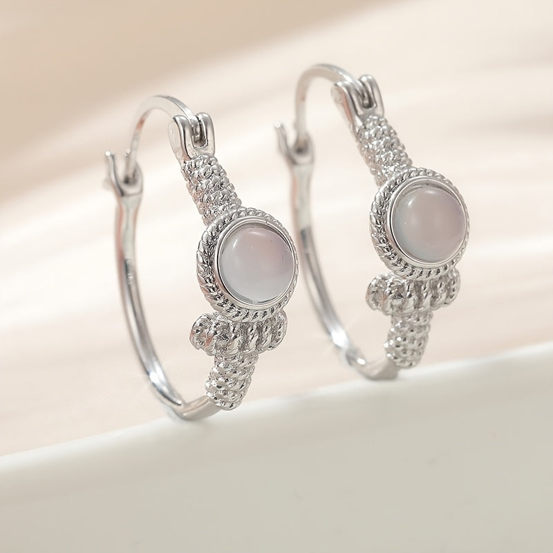 Add a touch of bohemian flair to your look with these stunning ethnic hoop earrings featuring rainbow moonstone.