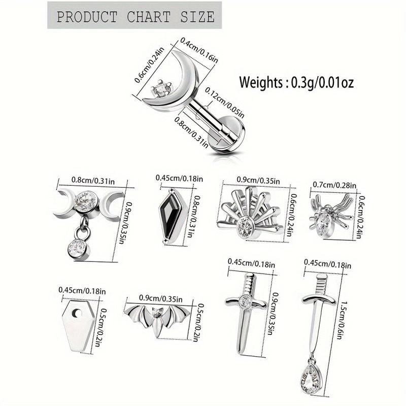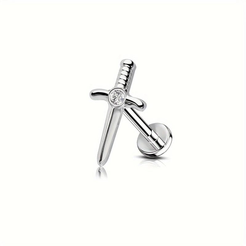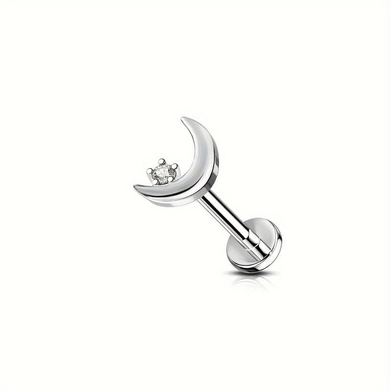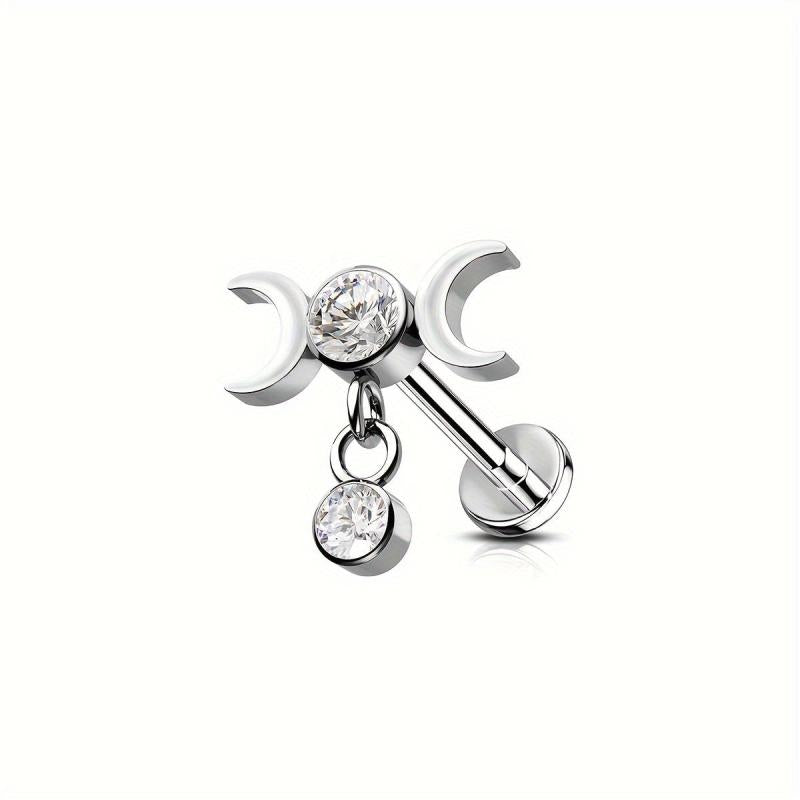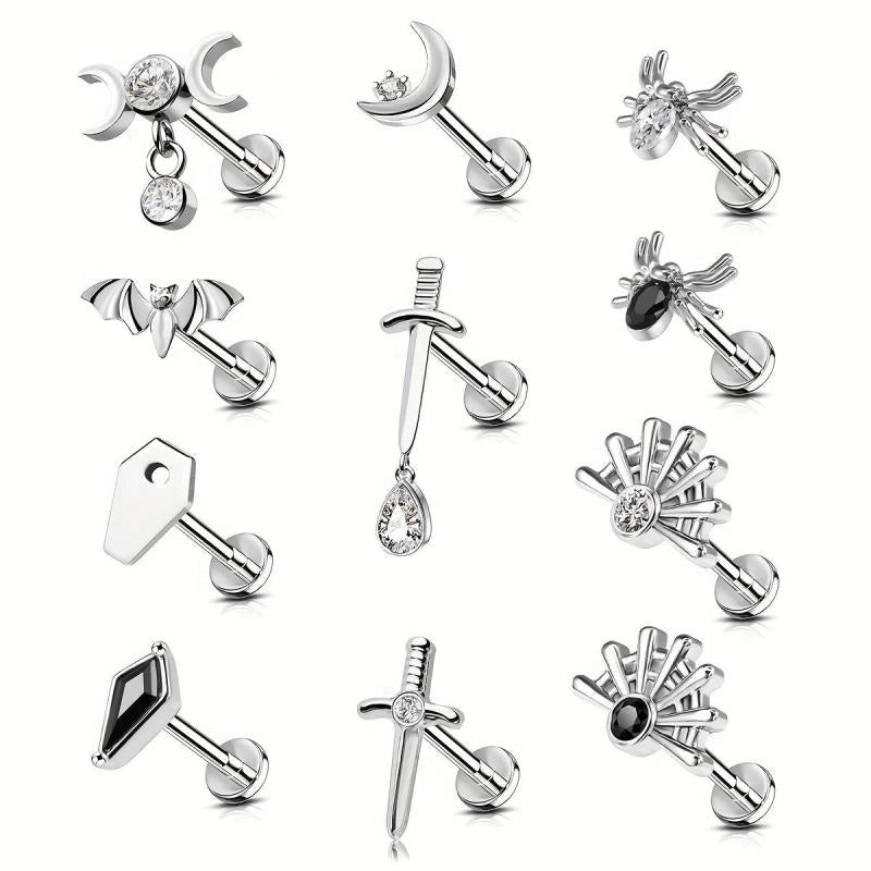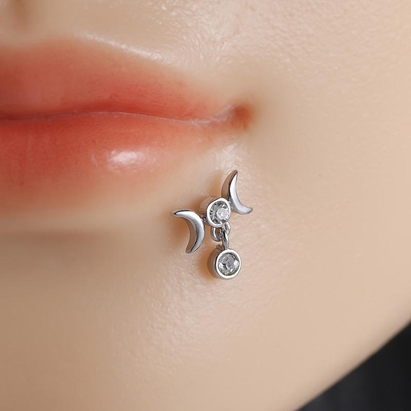 Unisex stainless steel earrings with rhinestone lip studs.