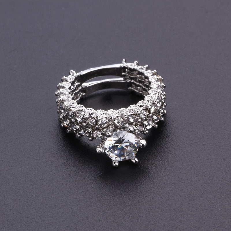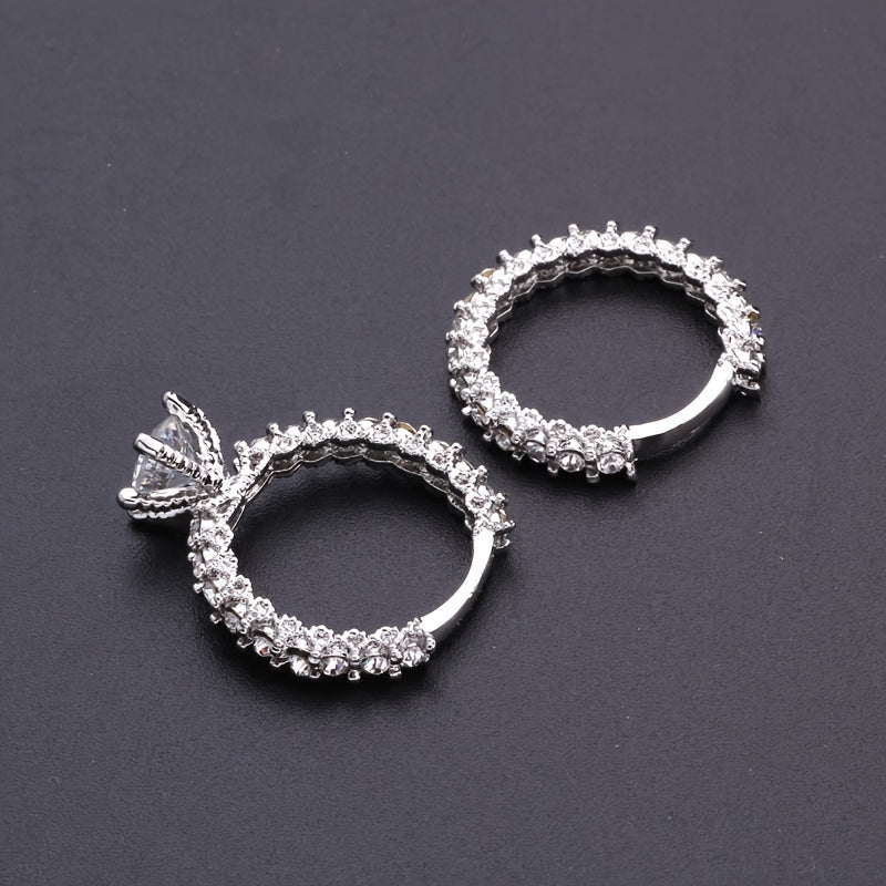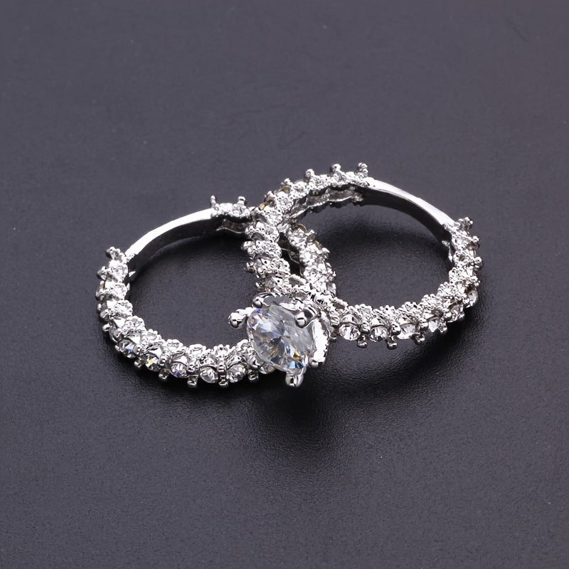 Elegant set of engagement rings adorned with full rhinestones, perfect for daily wear, parties, and special occasions. Minor imperfections give them a unique charm.