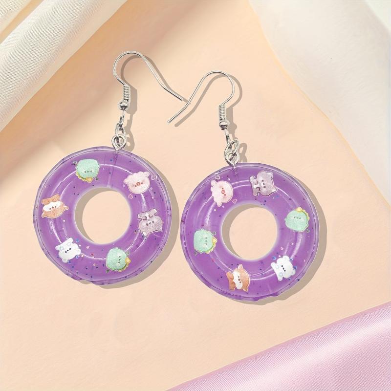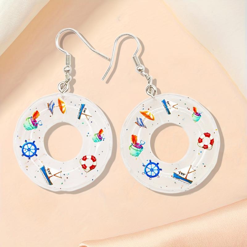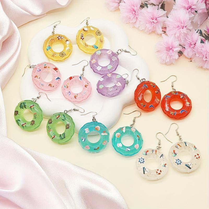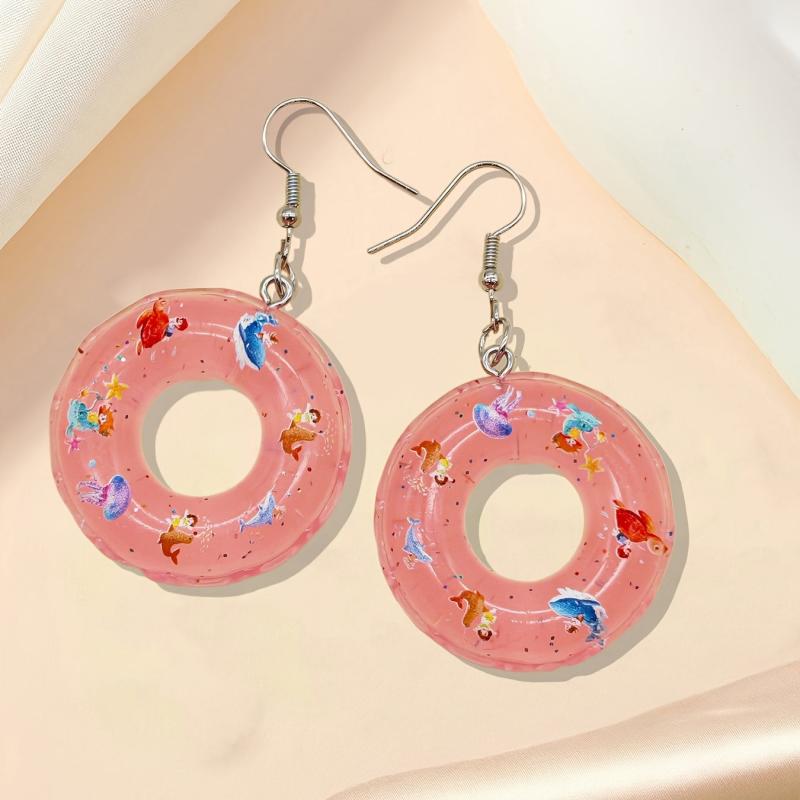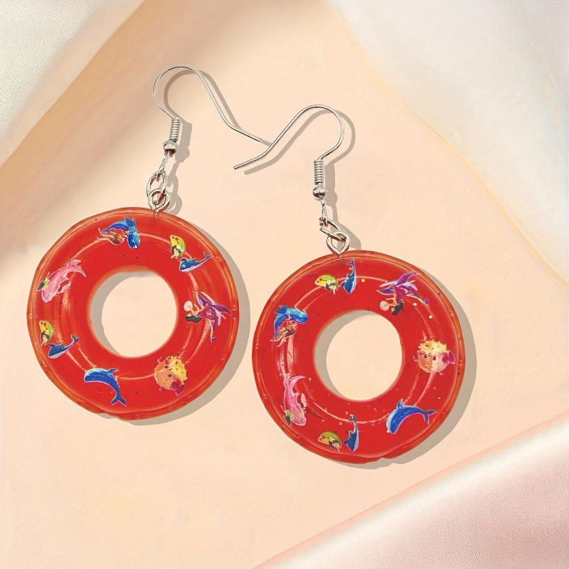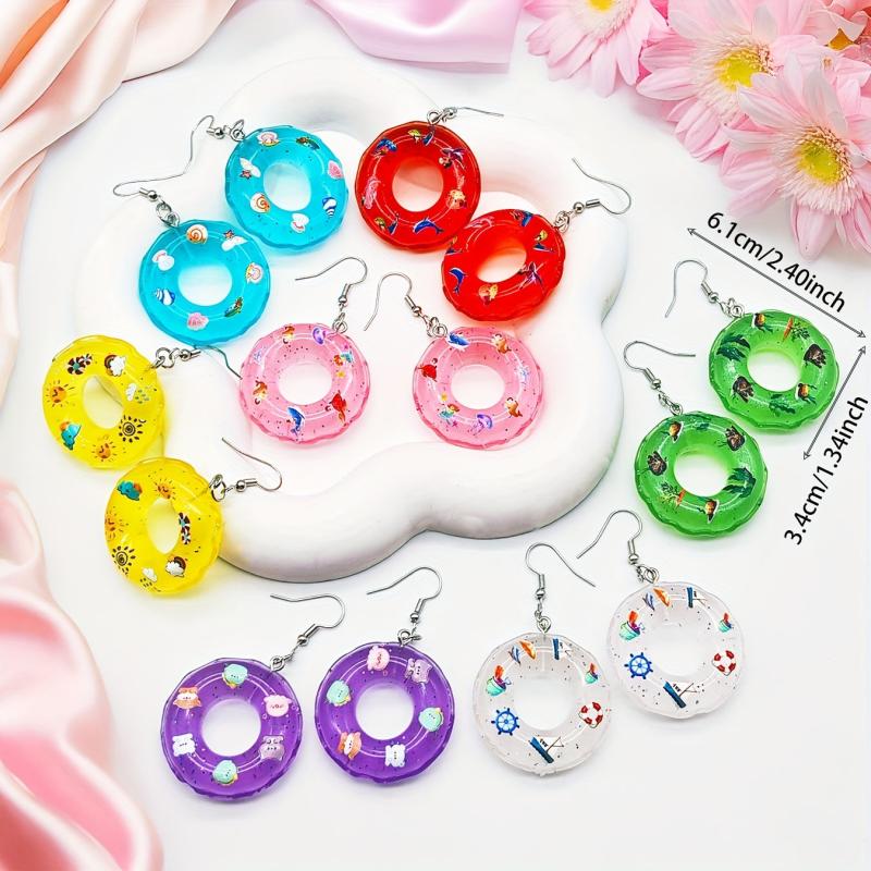 These personalized earrings feature a fashionable swimming ring design with a colorful and creative twist. The 3D cartoon light solid swimming ring adds a unique touch to your outfit.