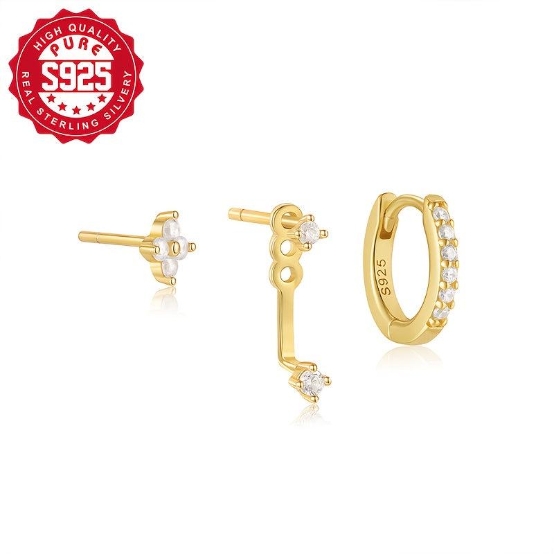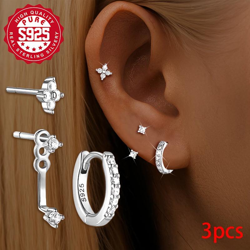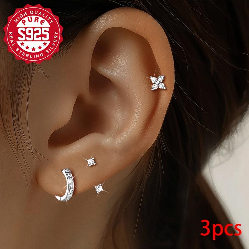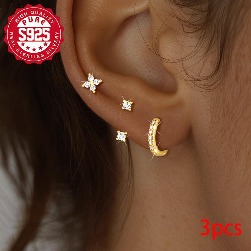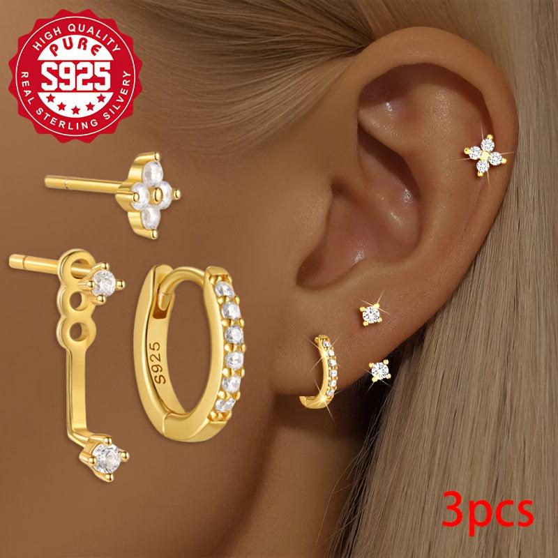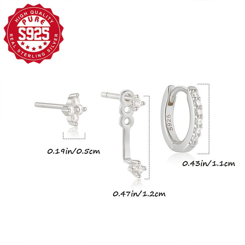 This stunning 3-piece earring set features flower inlaid design with synthetic zirconia, perfect for gifting or adding a touch of elegance to casual outfits. Hypoallergenic material ensures comfortable wear.