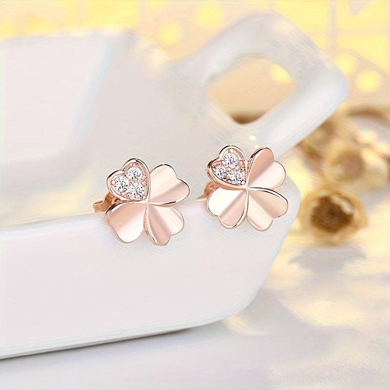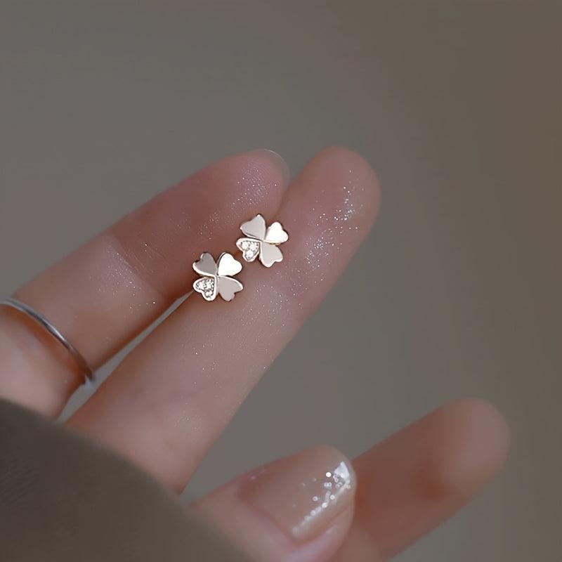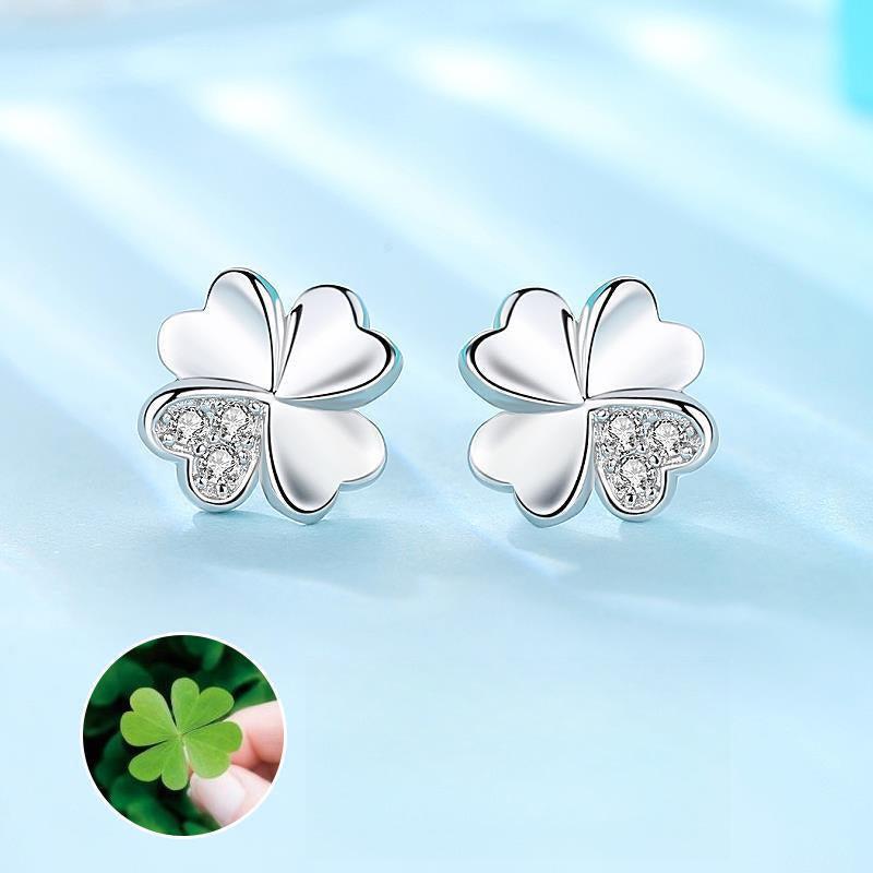 Enhance your style with these elegant silvery ear studs and earrings featuring a lucky four leaf clover design.
