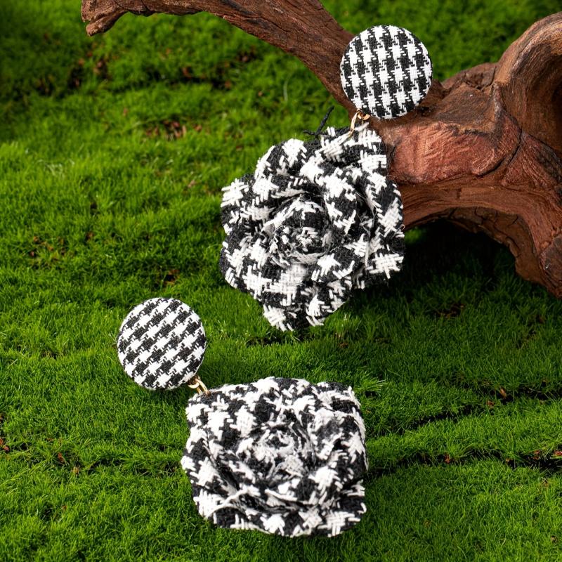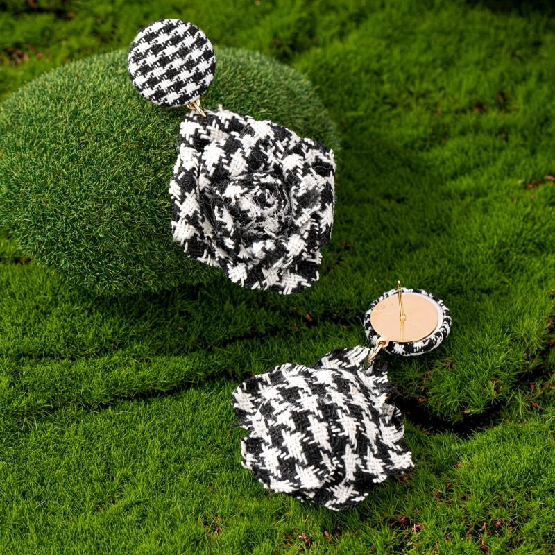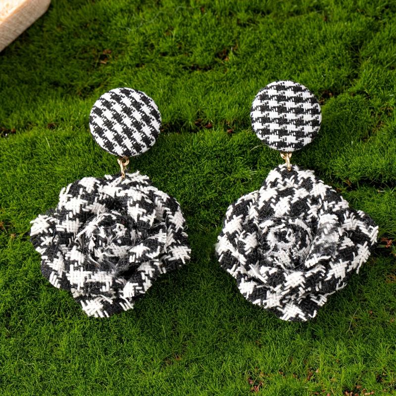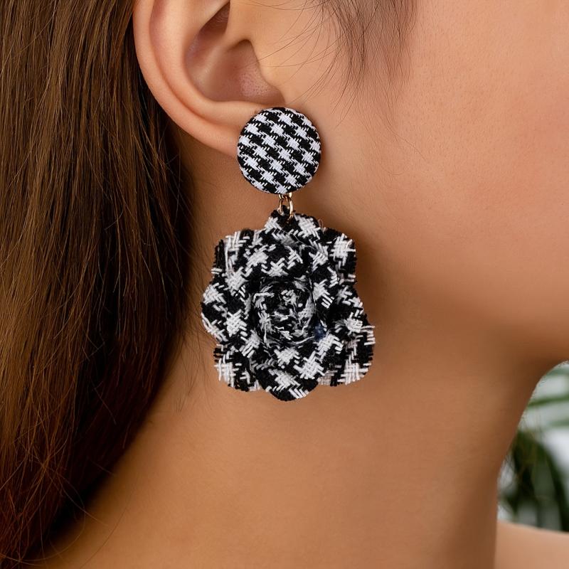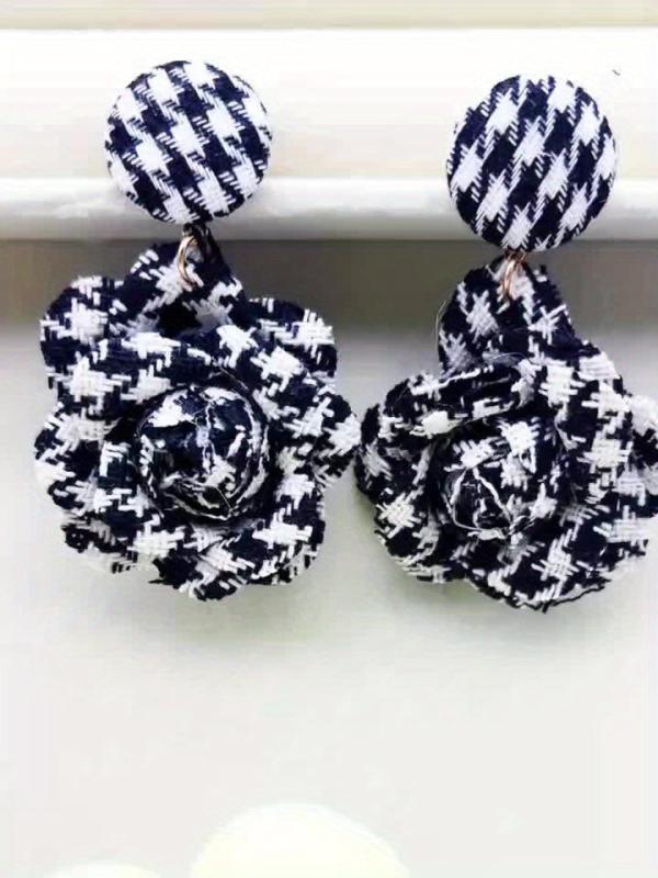 Add a touch of vintage charm to your look with these French floral stud earrings featuring checkered roses. These lightweight earrings are perfect for everyday wear or special occasions.