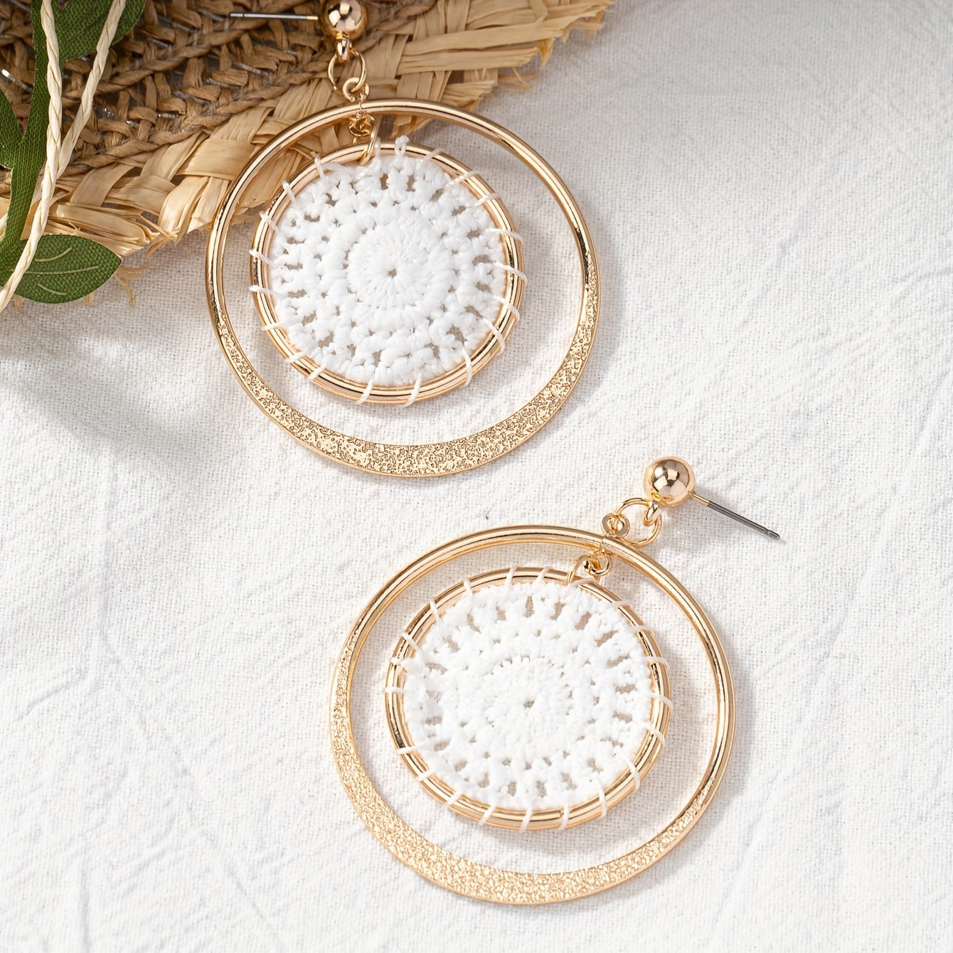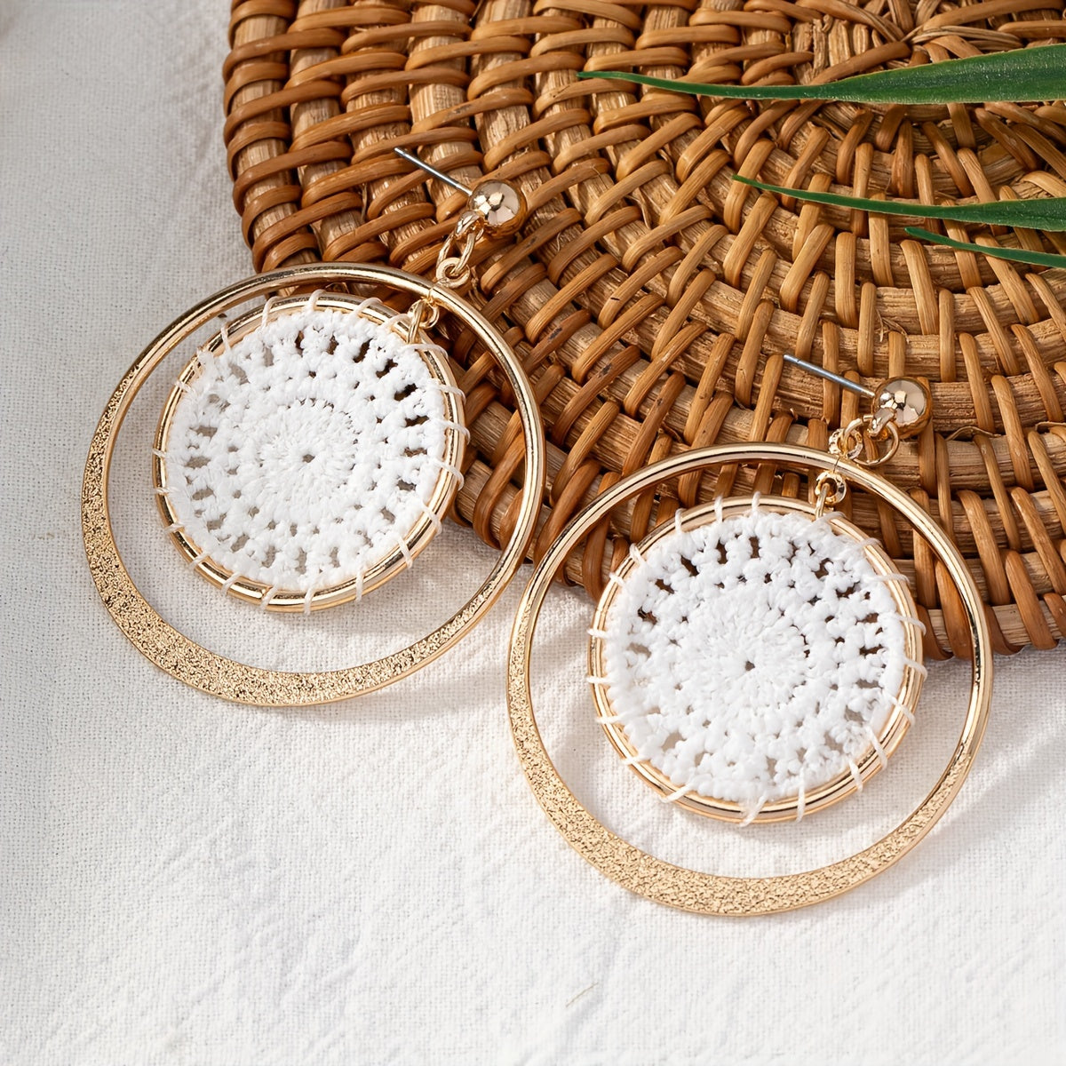 Elegant hoop earrings with vintage texture, perfect for casual attire and vacations.