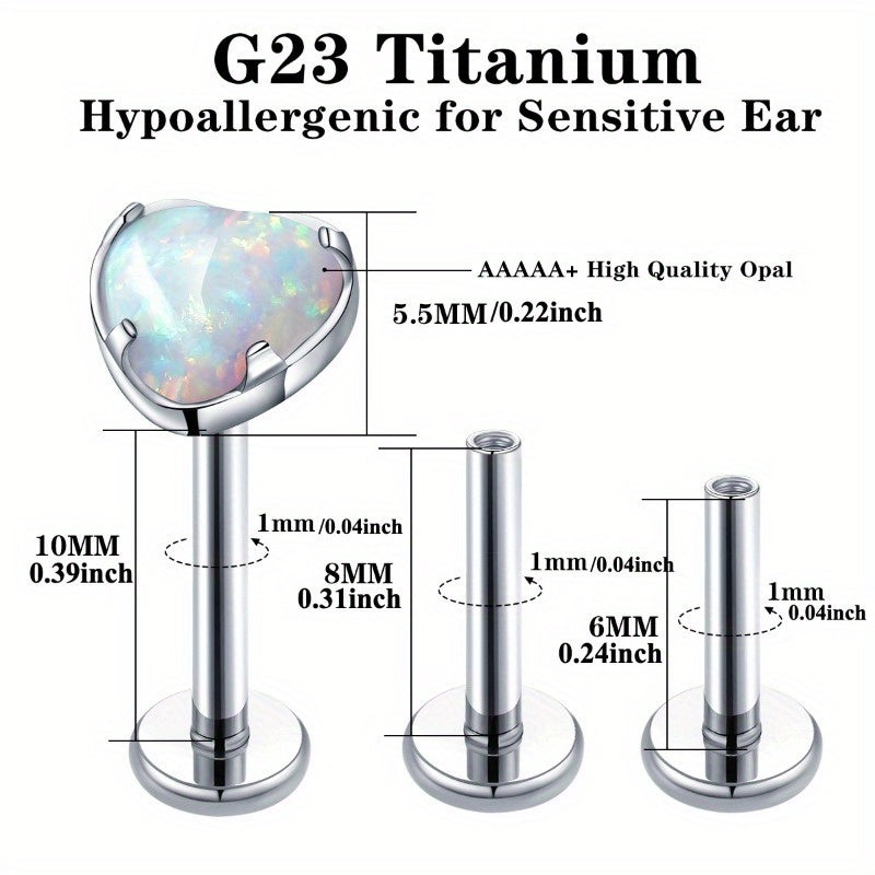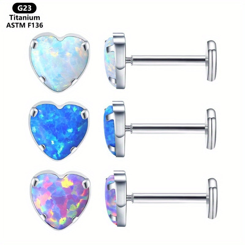 Add a touch of iridescence to your look with these heart-shaped opal earrings. Made of G23 titanium alloy, designed for cartilage and lip piercings.