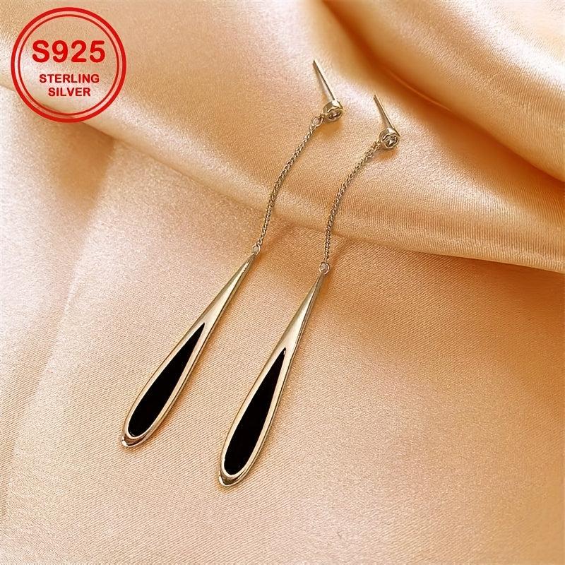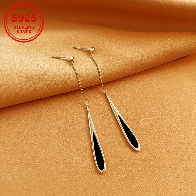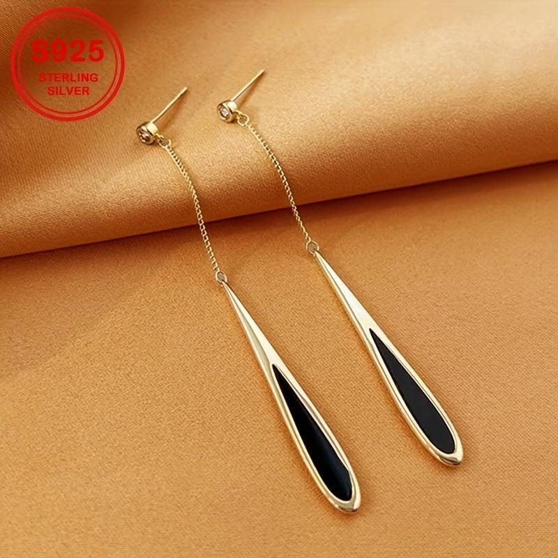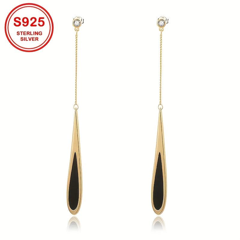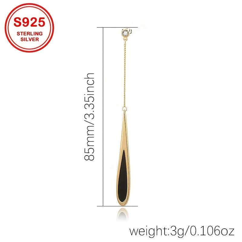 Geometric Drop Earrings with Zirconia Inlay S925 Silver