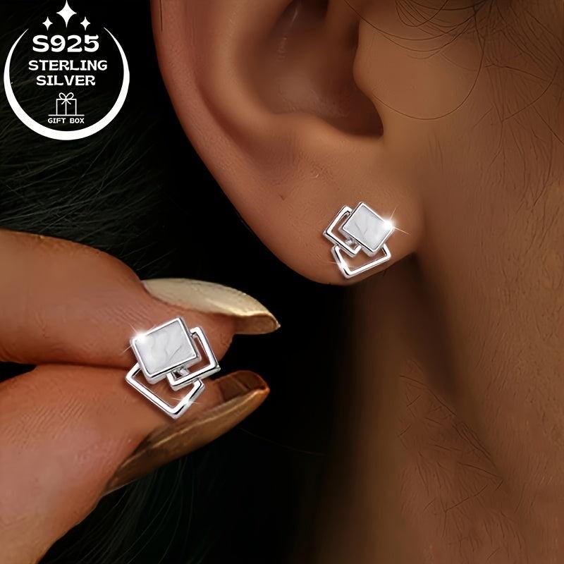 These classic geometric square ear studs are perfect for daily wear. Made with 925 sterling silver and resin inlay, they are lightweight and comfortable to wear.