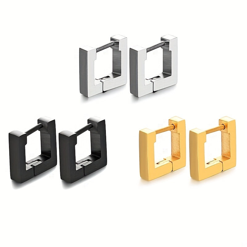 Stay stylish with these geometric square earrings. Made of stainless steel, they are perfect for punk and hiphop styles. Double-sided design with anti-allergy ear buckle for comfort.