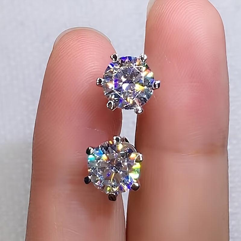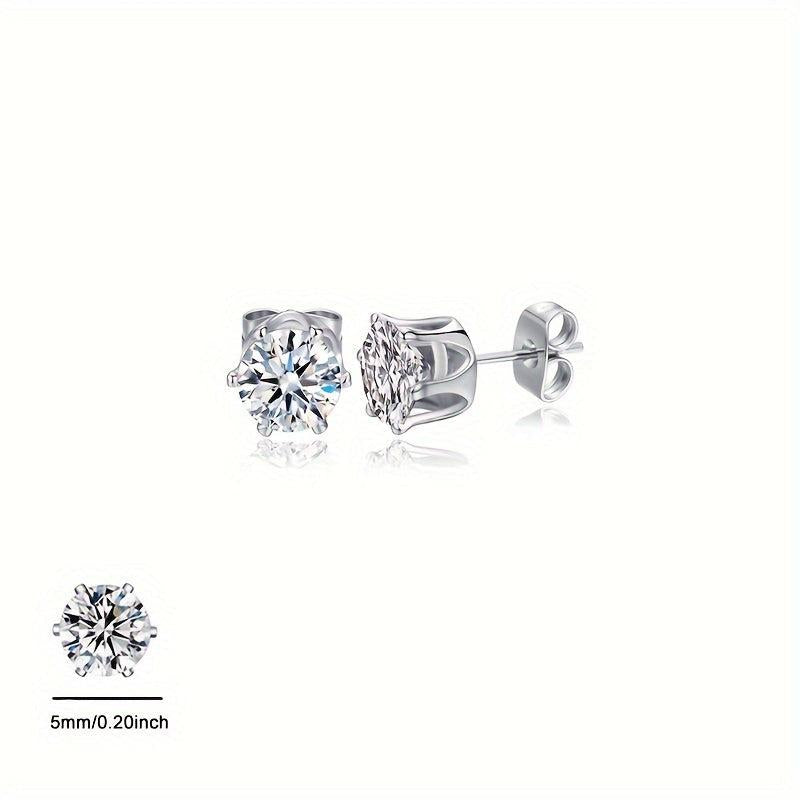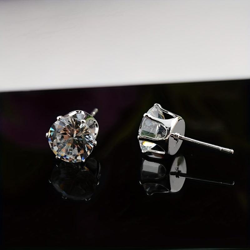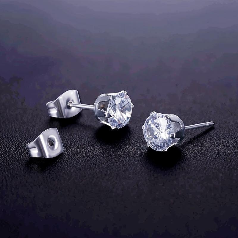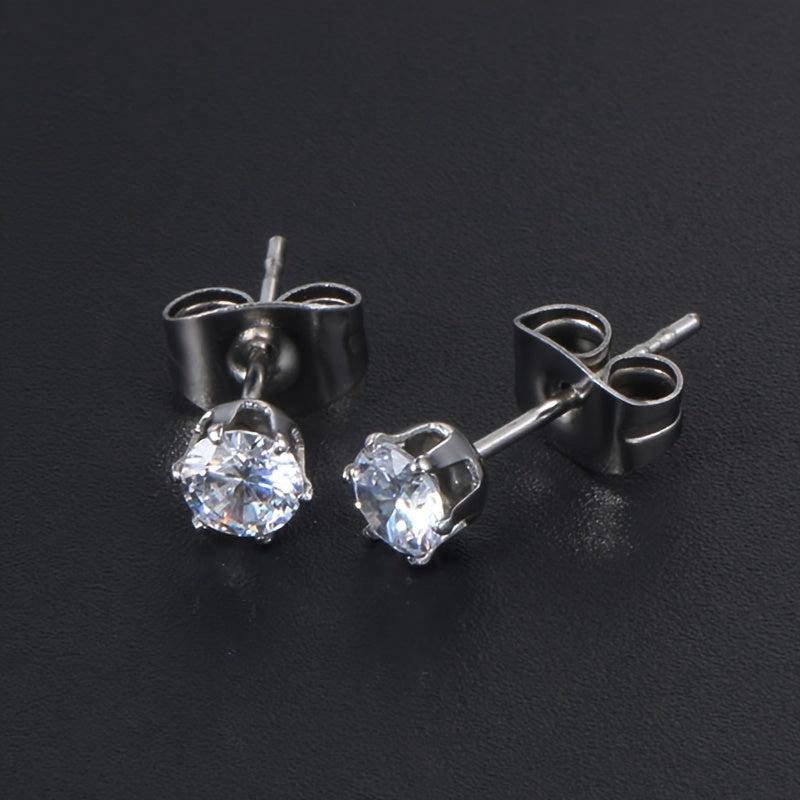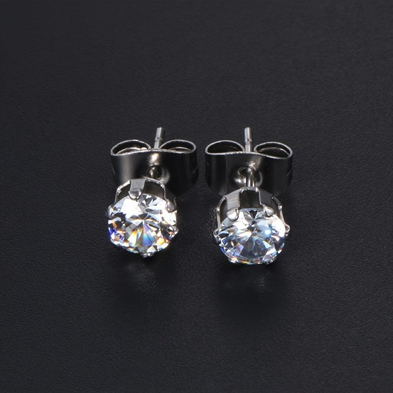 Add a touch of sparkle with these glitter style synthetic zirconia stud earrings. Made of hypoallergenic stainless steel, perfect for engagement, wedding, or everyday wear. Versatile and elegant bridal accessory.