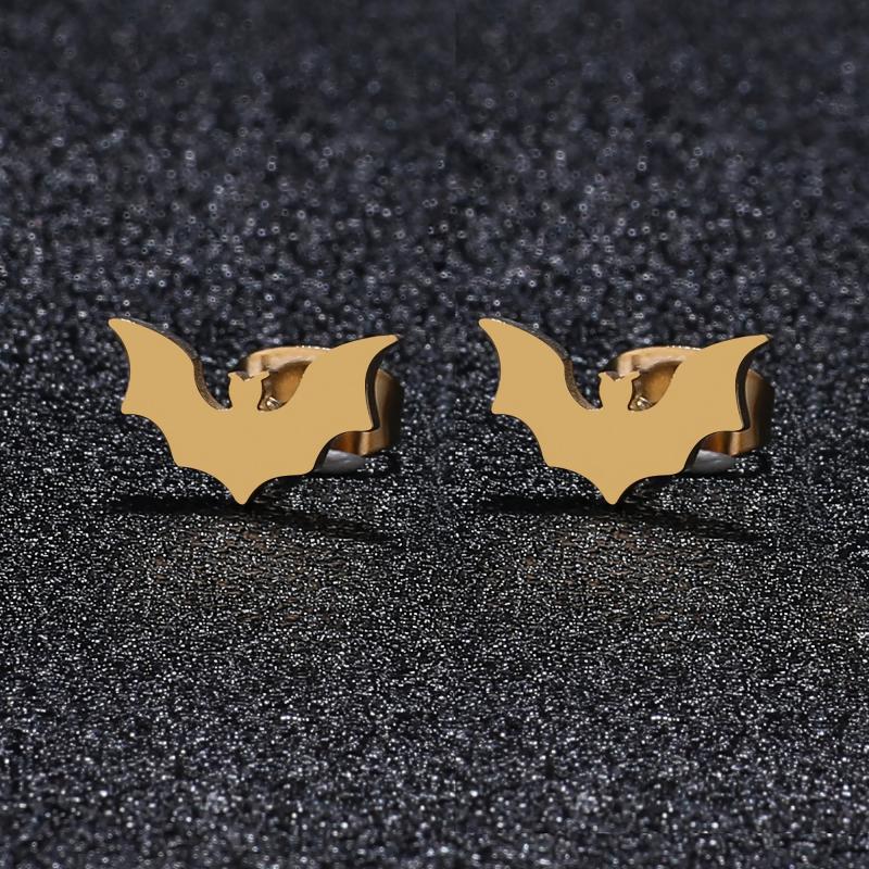 These stainless steel bat stud earrings feature an elegant 18K golden plating, suitable for daily wear. Hypoallergenic ear needle ensures comfort. Perfect for any season or occasion.