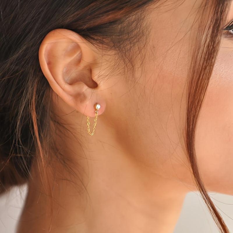 Elevate your style with these versatile stud earrings featuring a chain detail. Perfect for parties and gifting, these earrings are a stylish addition to any outfit.