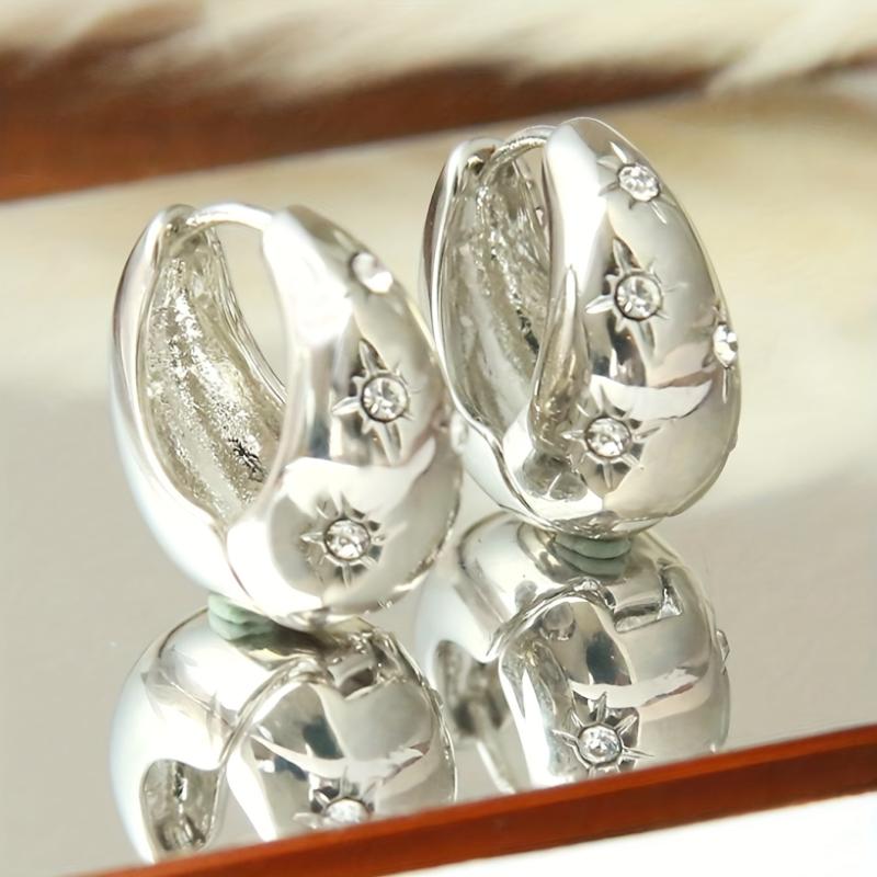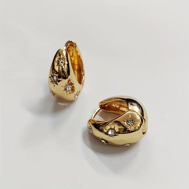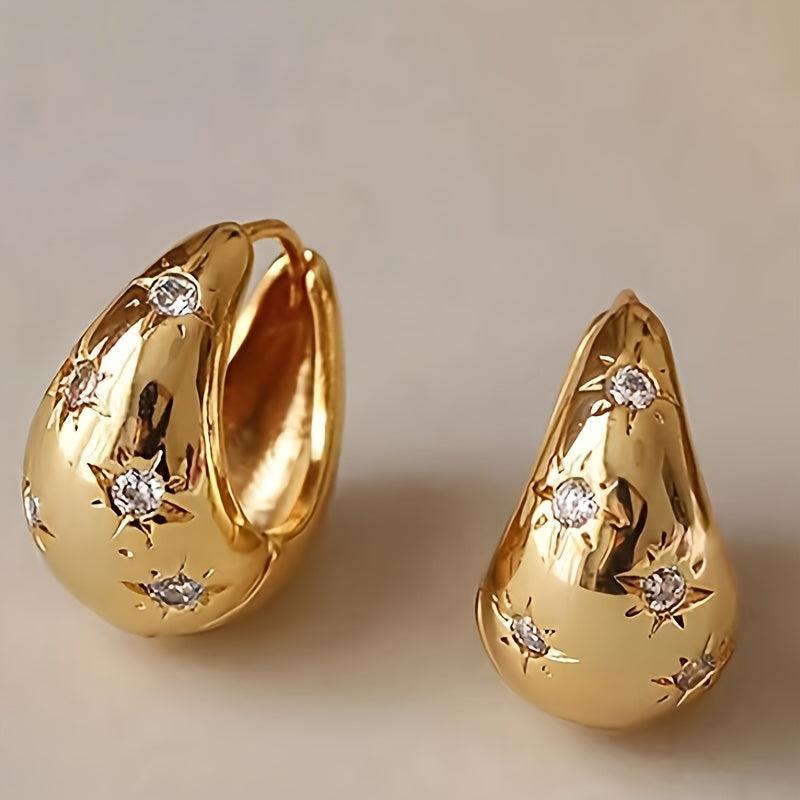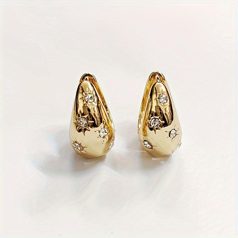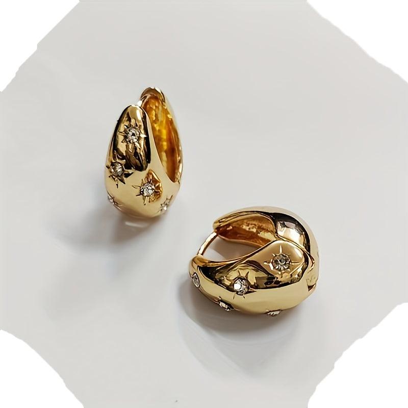 Add a touch of glamour to your look with these high-quality golden ear studs featuring an exaggerated eight-pointed star design adorned with zirconia. Perfect for any occasion.
