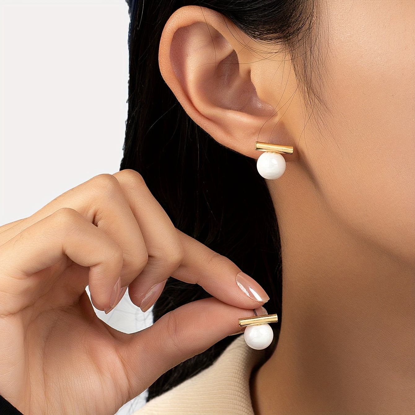 • Elegant dangle earrings with faux pearl decoration