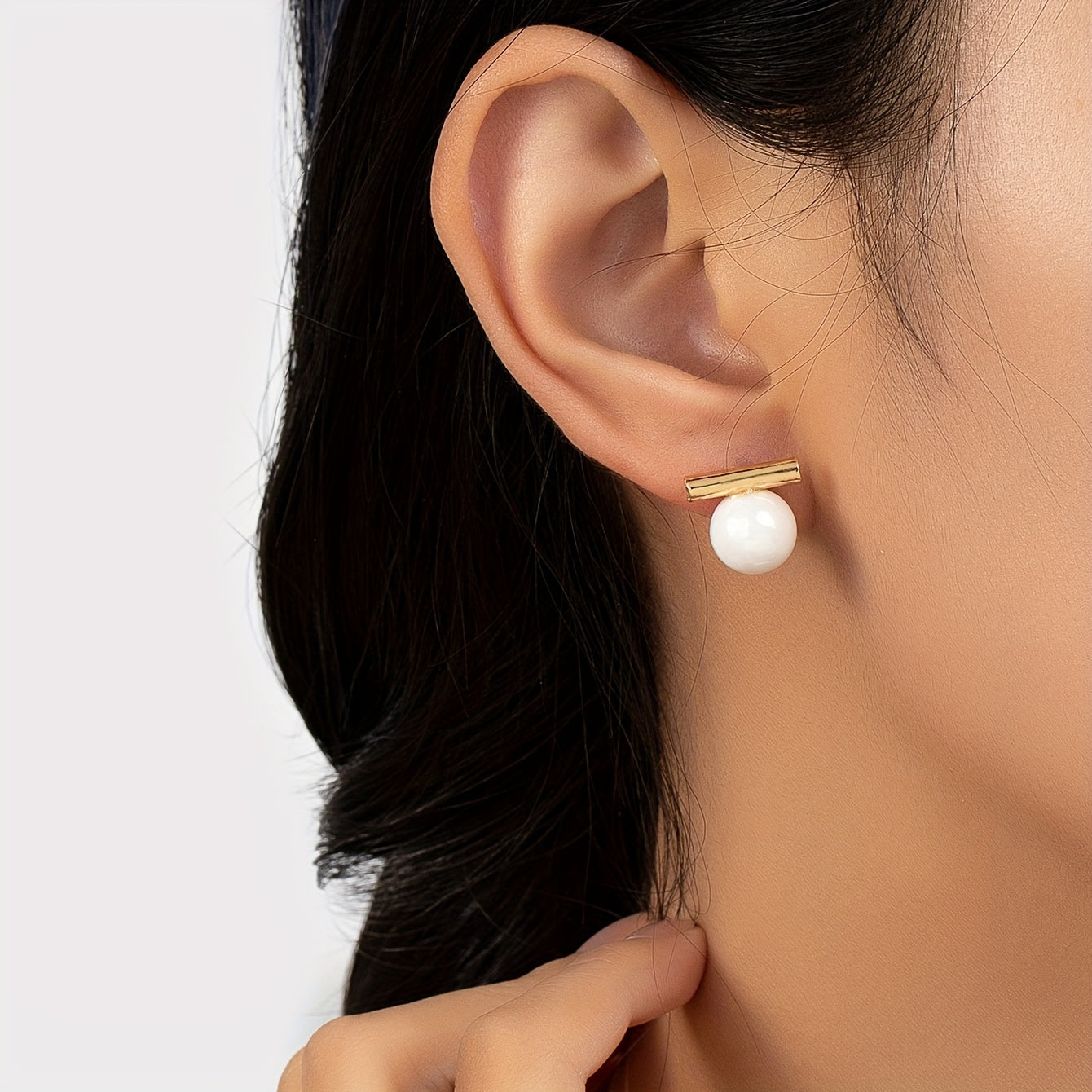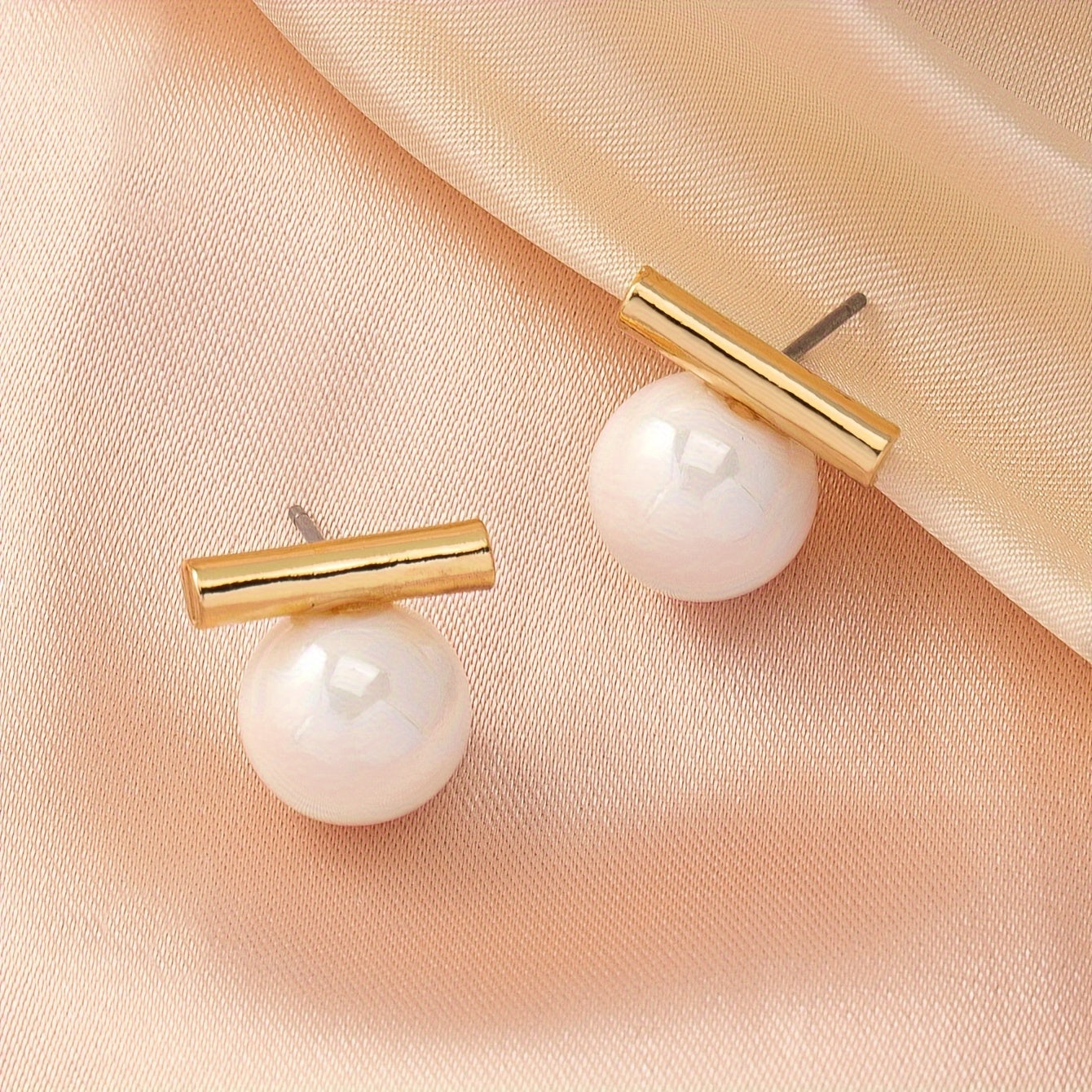 These elegant dangle earrings feature a golden stick design with faux pearl decoration. Made of zinc alloy, they are a stylish jewelry piece that makes a great gift for females.