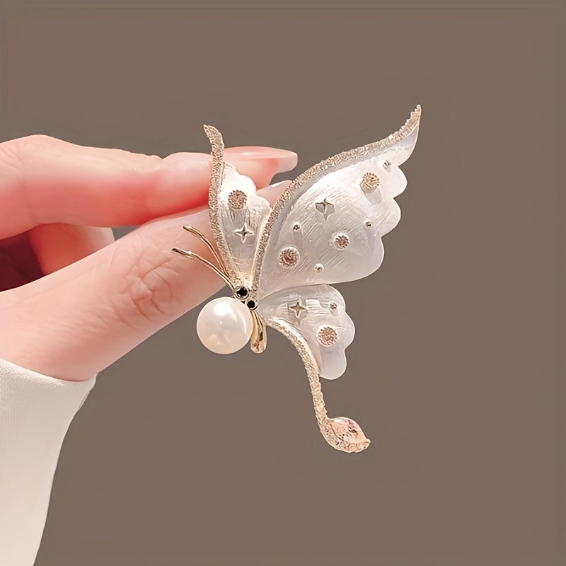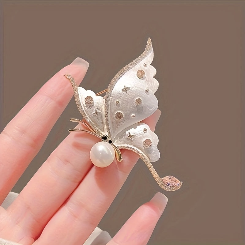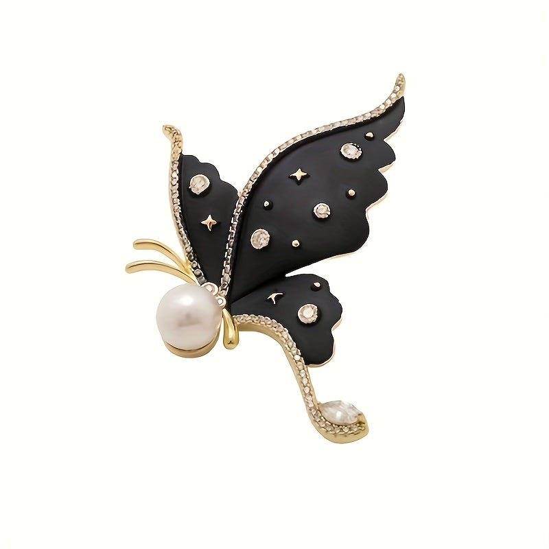 Add a touch of elegance to your outfit with this charming butterfly brooch featuring rhinestone accents. The golden tone and enamel details make it a sophisticated clothing accessory to prevent wardrobe malfunctions.