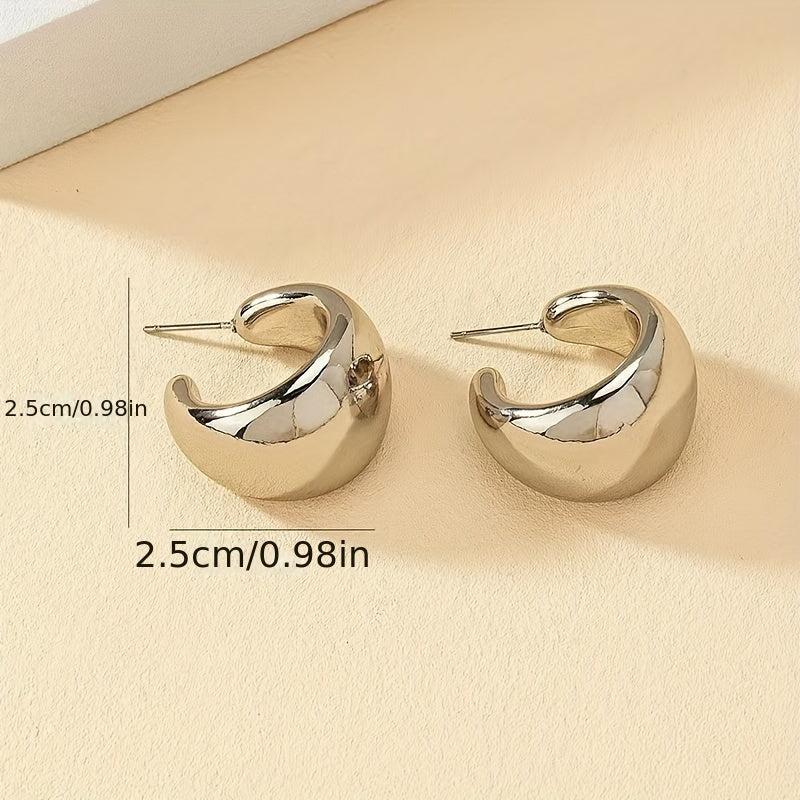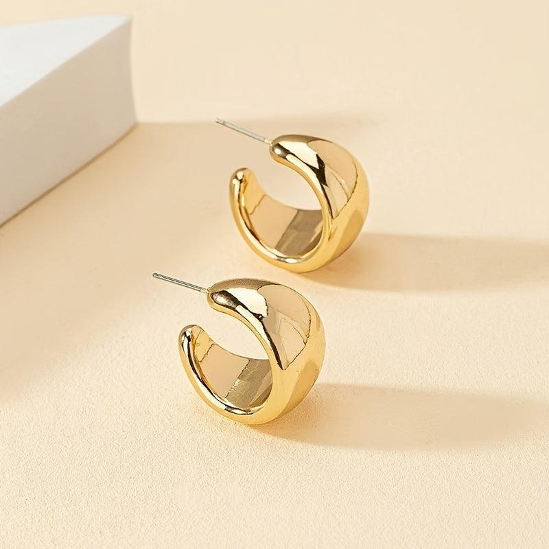 These golden tone C-shaped hoop earrings are perfect for adding a touch of elegance to your look. They have a sleek and minimalist design that is ideal for daily wear or vacation outfits.
