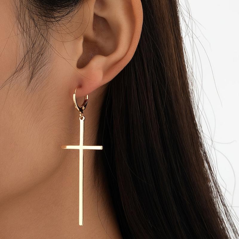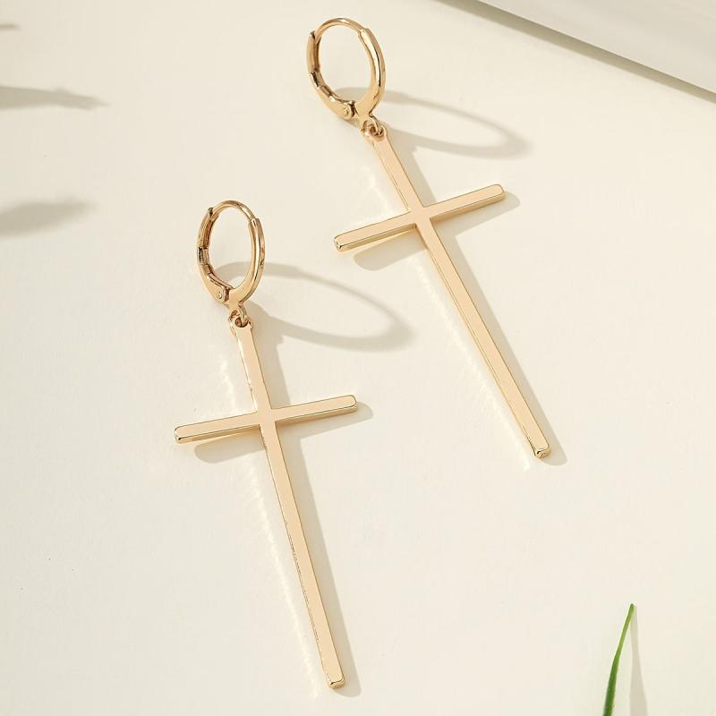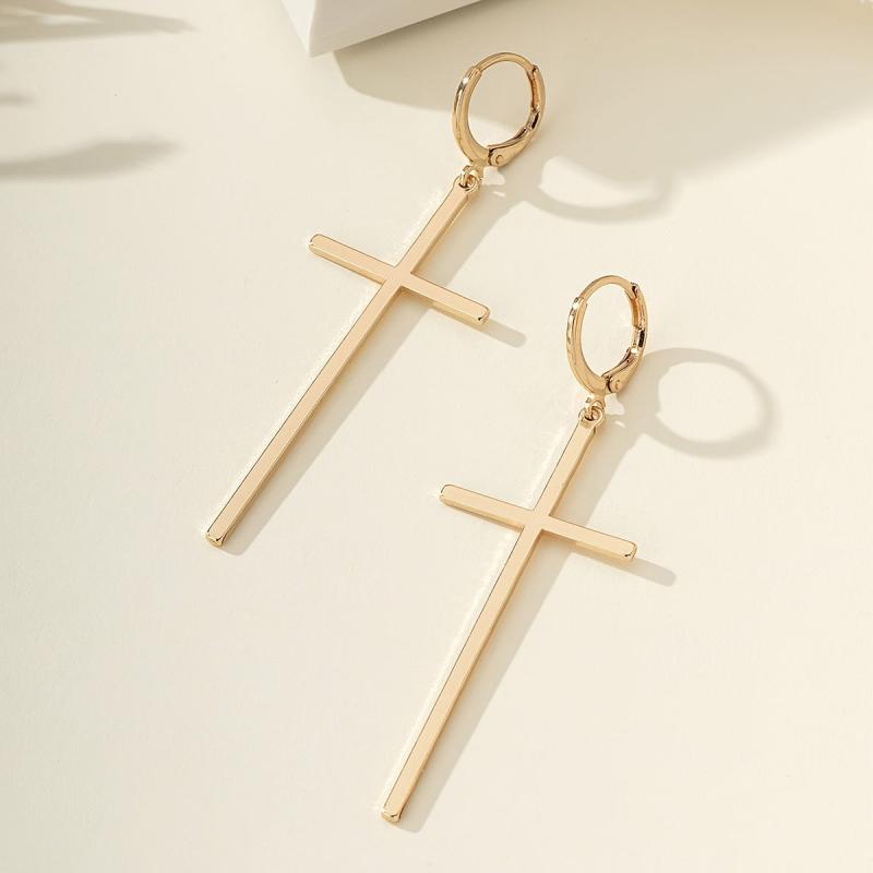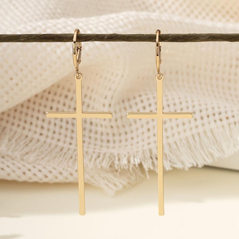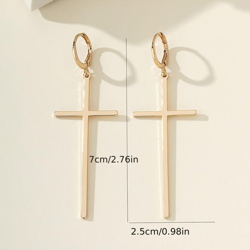 Add a touch of style with these golden tone cross earrings featuring sleek nickel copper hooks. Perfect for vacation or casual attire.