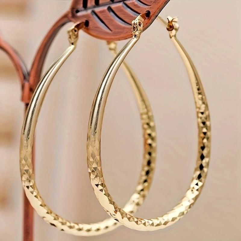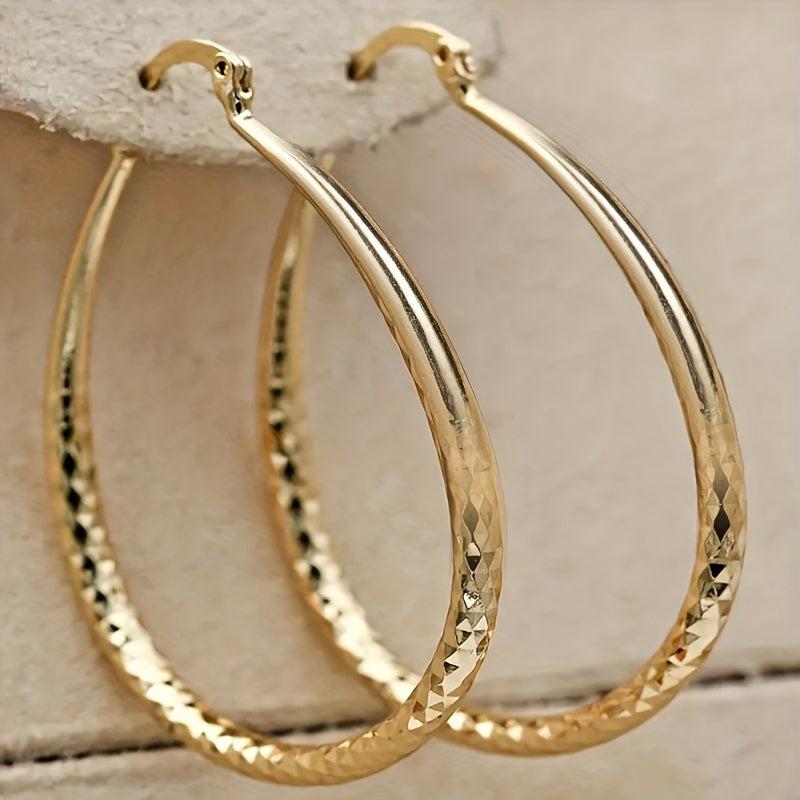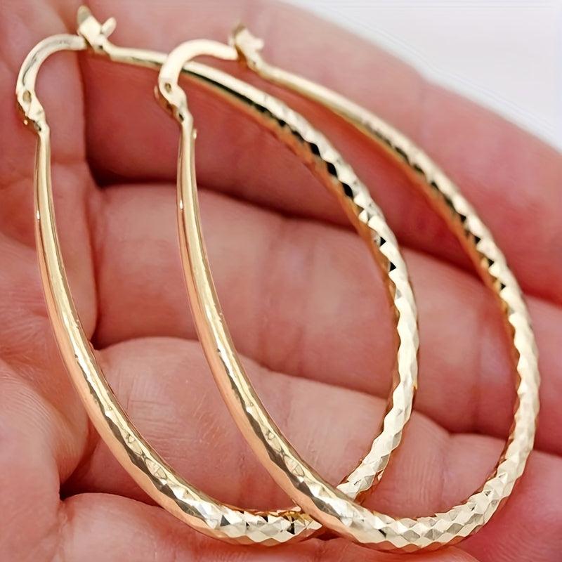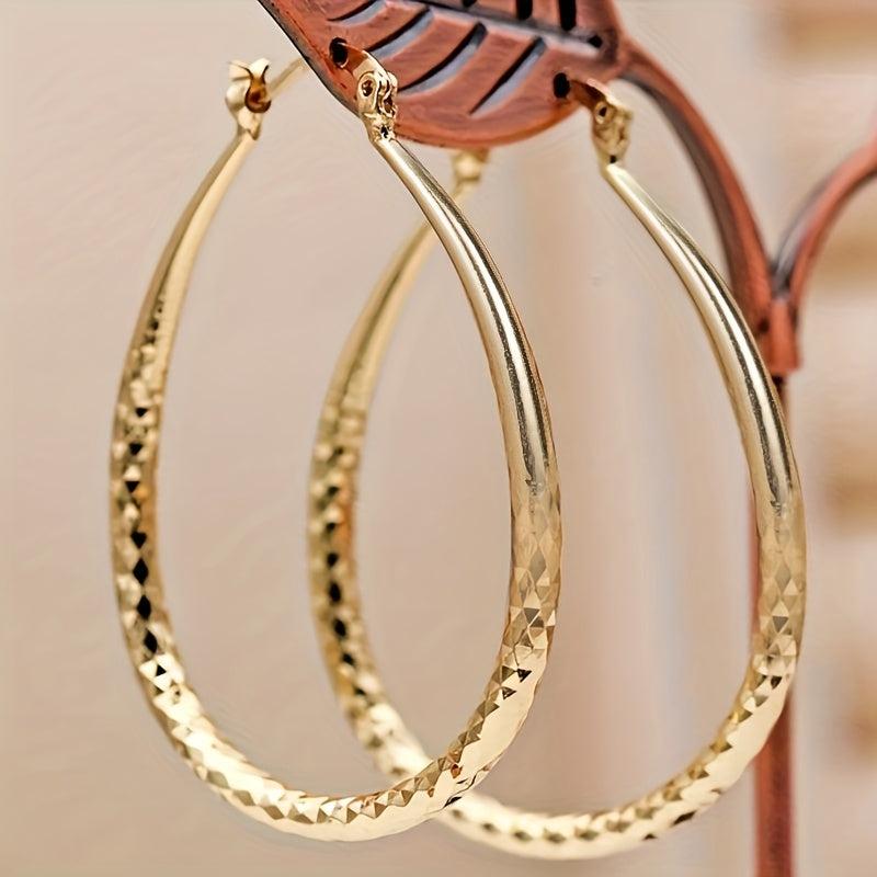 Add a touch of glamour and elegance to your look with these stylish golden tone hoop earrings. Perfect for casual wear, parties, and vacations. Made with nickel copper and KC golden plating.