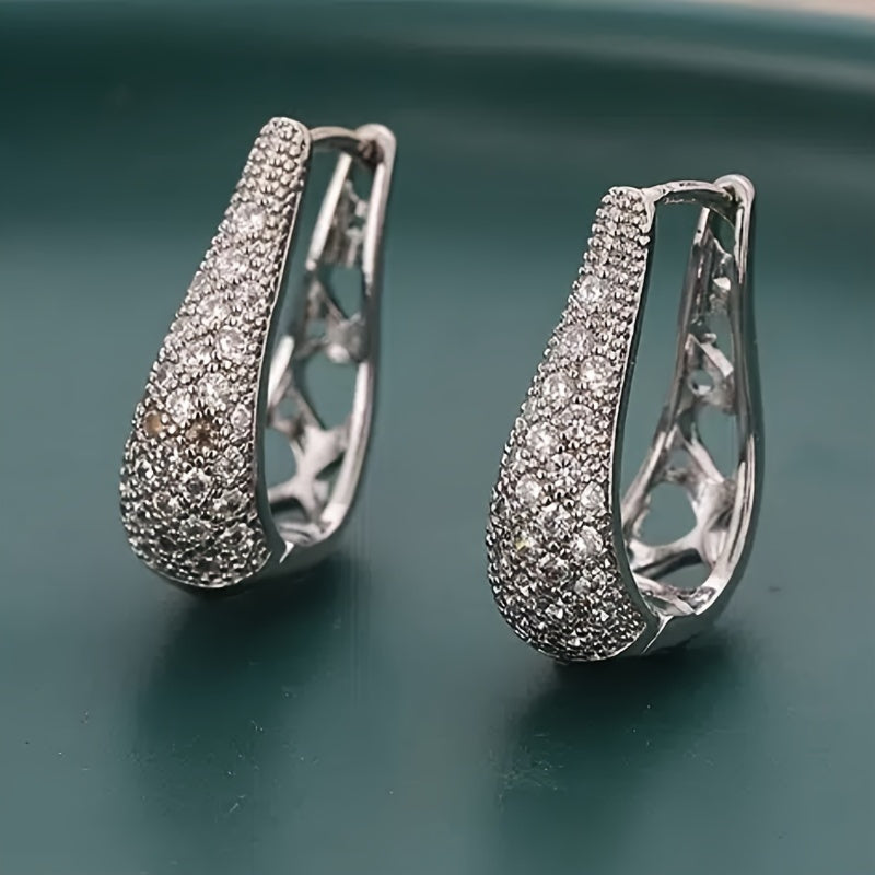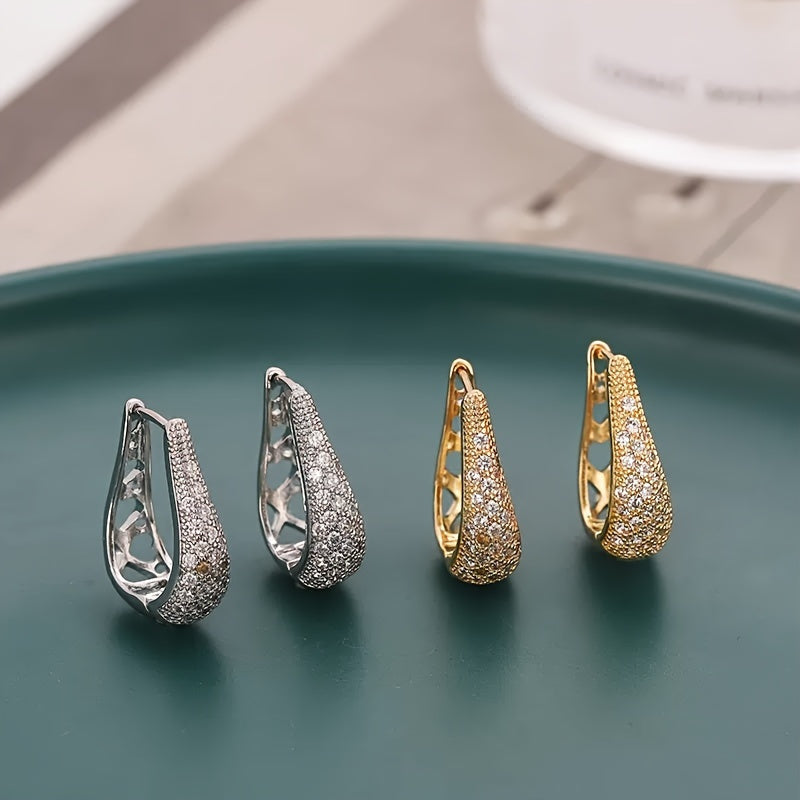 Add a touch of glamour to your outfit with these stunning hoop earrings. Made with sparkling cubic zirconia, these earrings are ideal for parties, vacations, and casual wear.