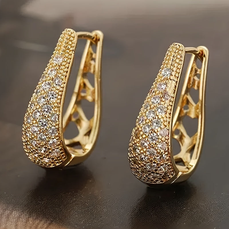 Golden Toned Hoop Earrings for Women Miami Style with Cubic Zirconia