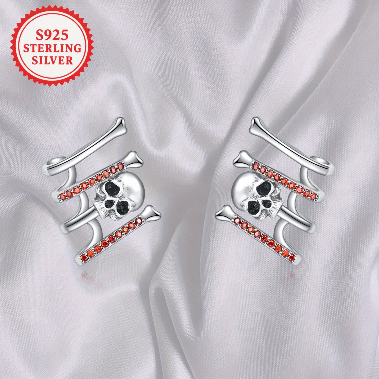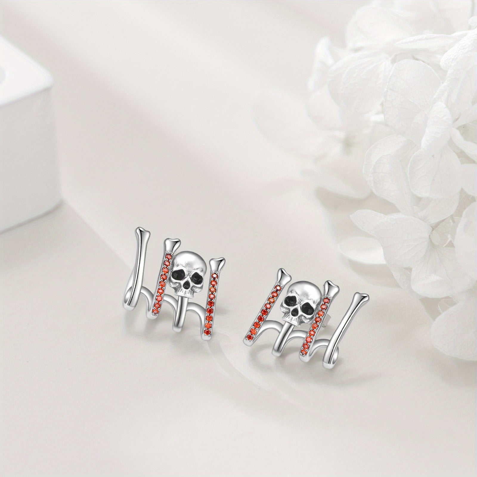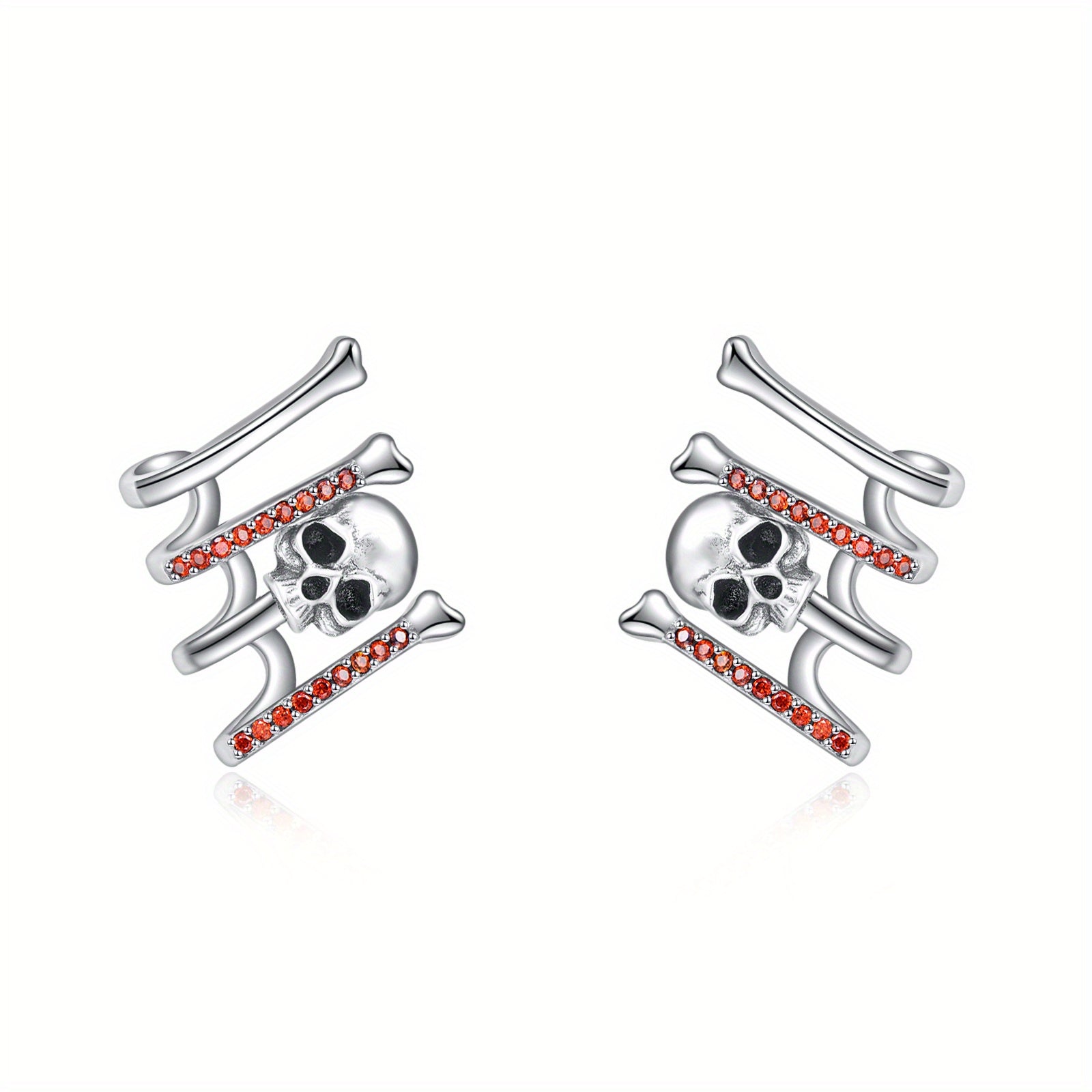 Gothic Skull Claw Earrings Sterling Silver Ear Cuff Halloween Jewelry