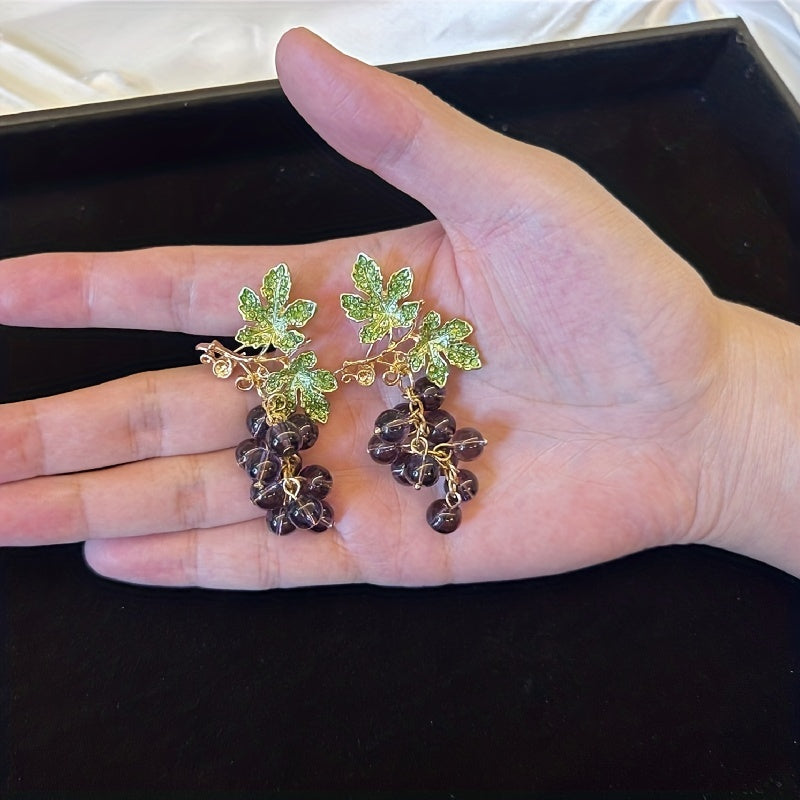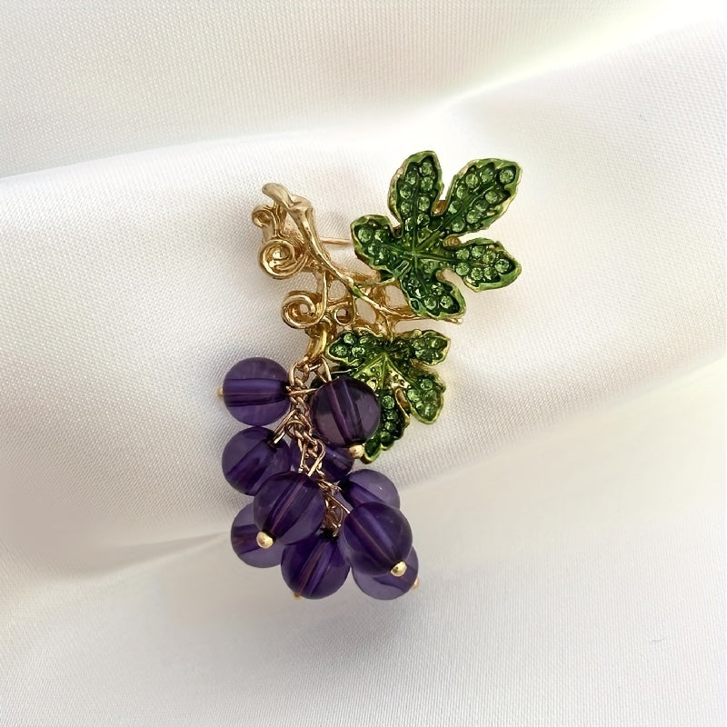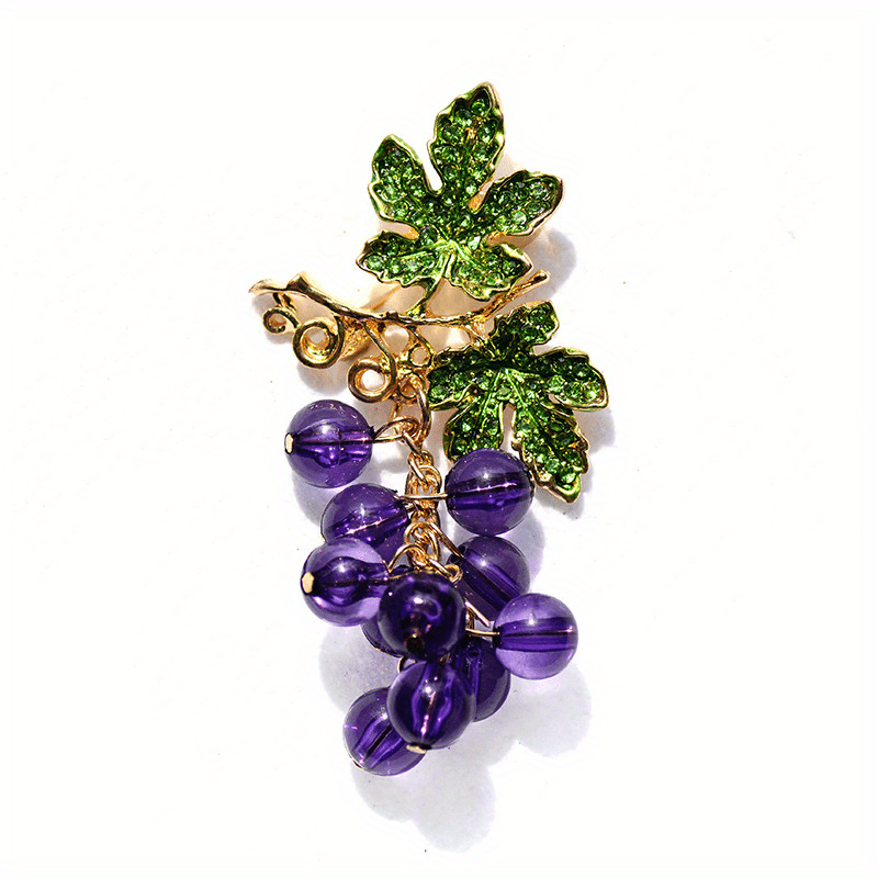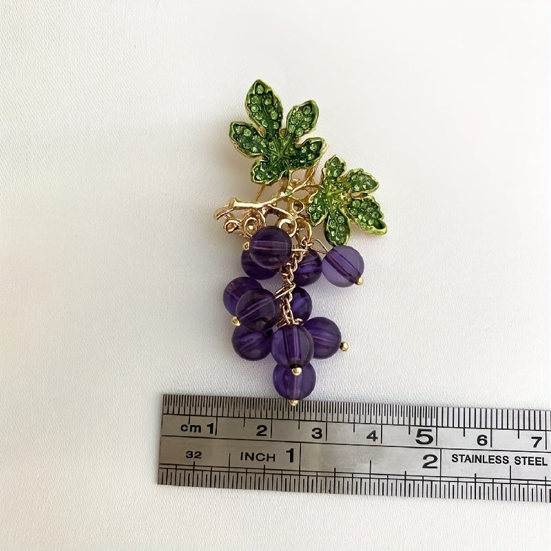 Add a touch of whimsy to your outfit with these grape brooches featuring rhinestone embellishments. Perfect for casual or office wear.