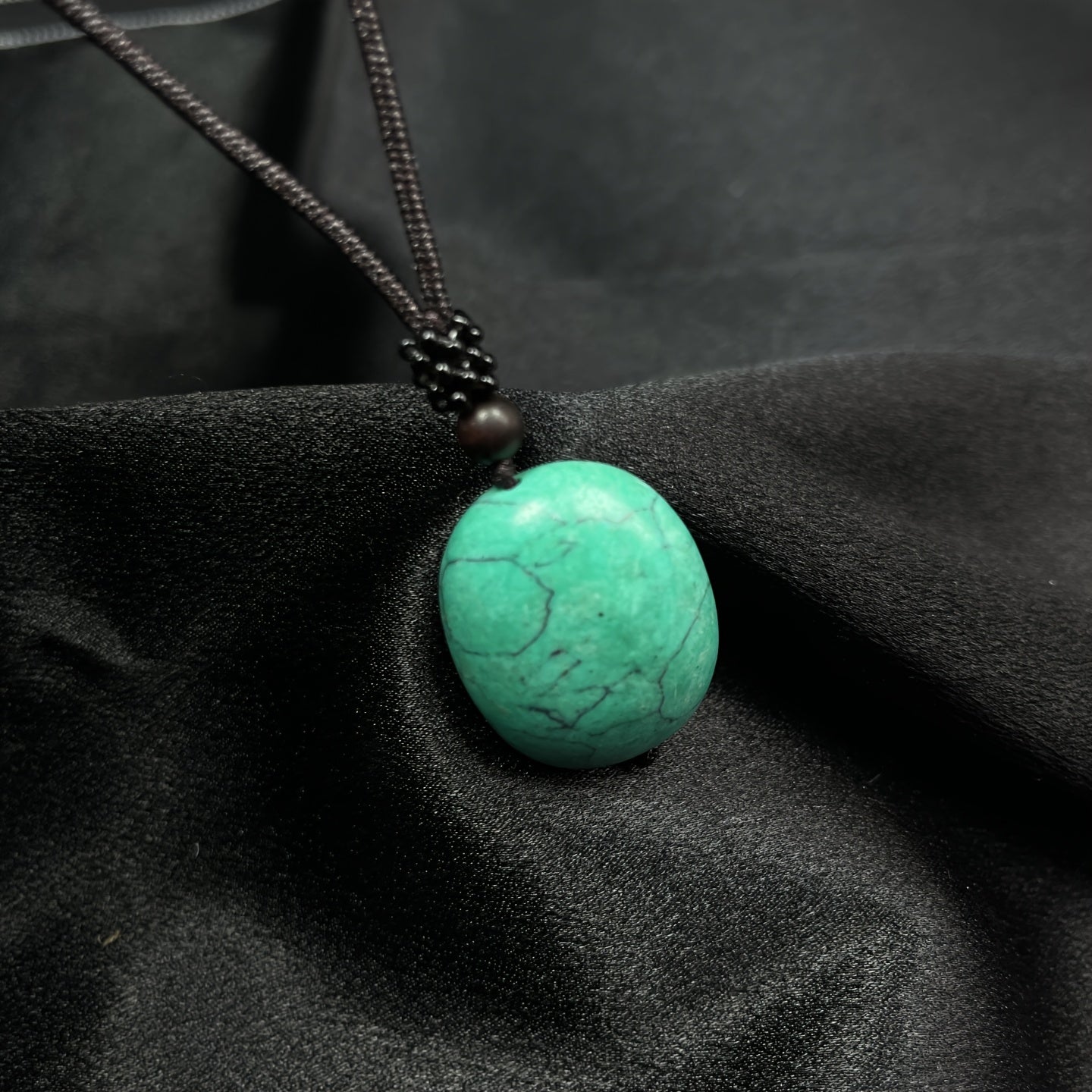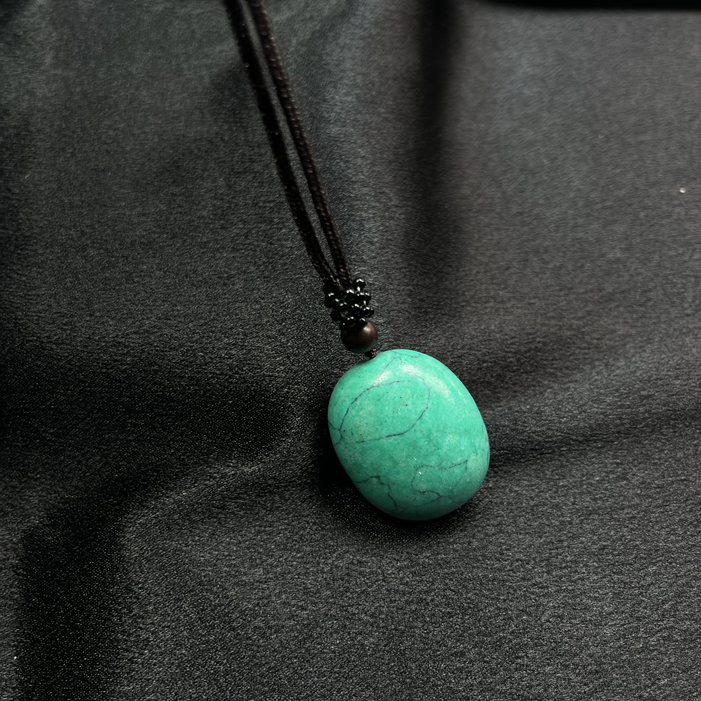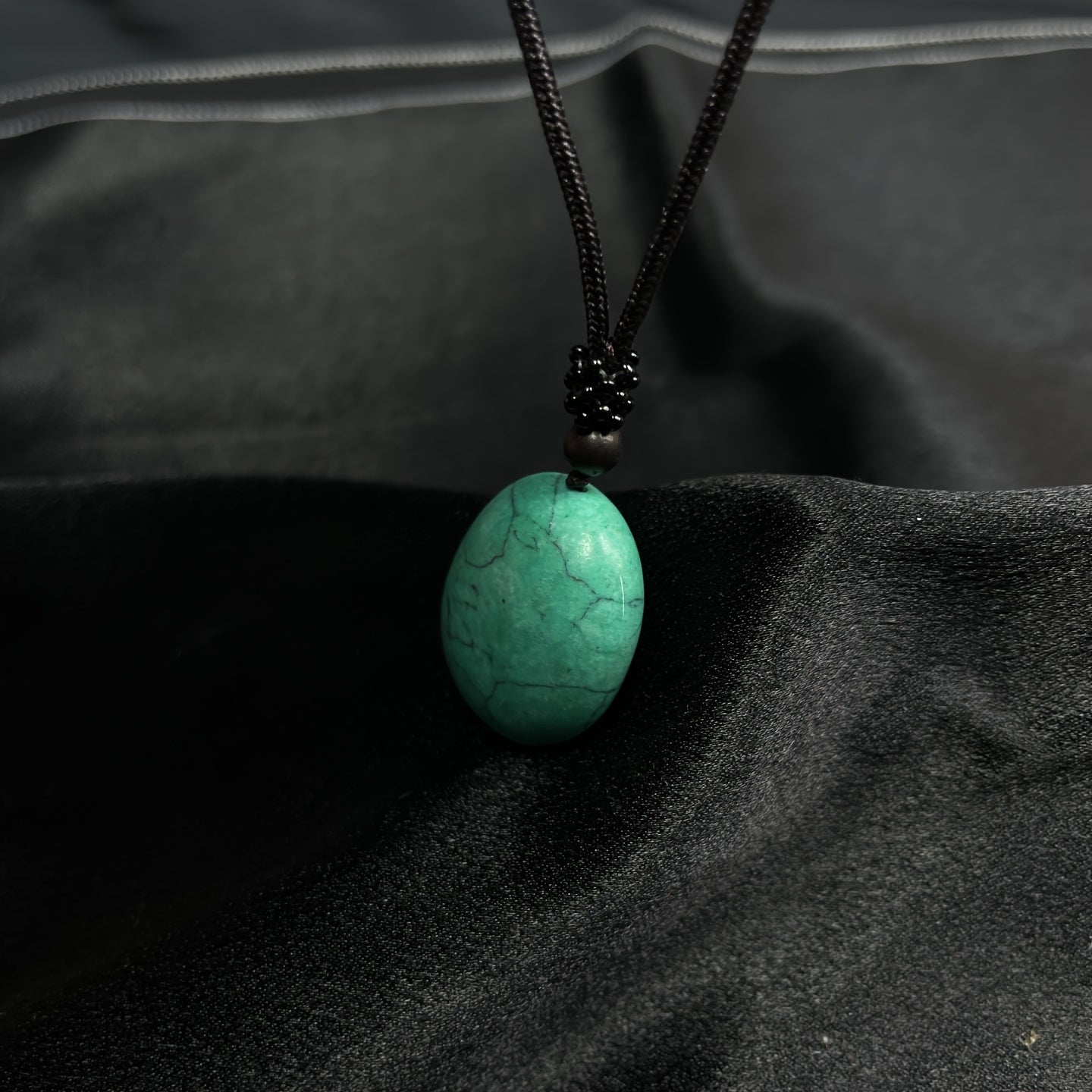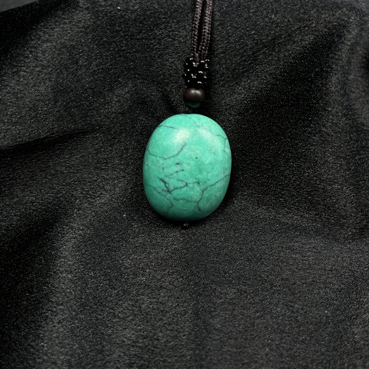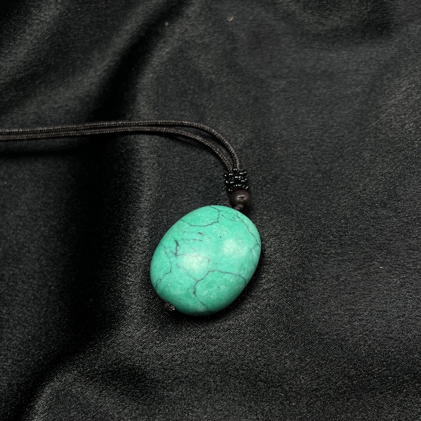 Green Cracked Pattern Pendant Necklace with Cord Unisex