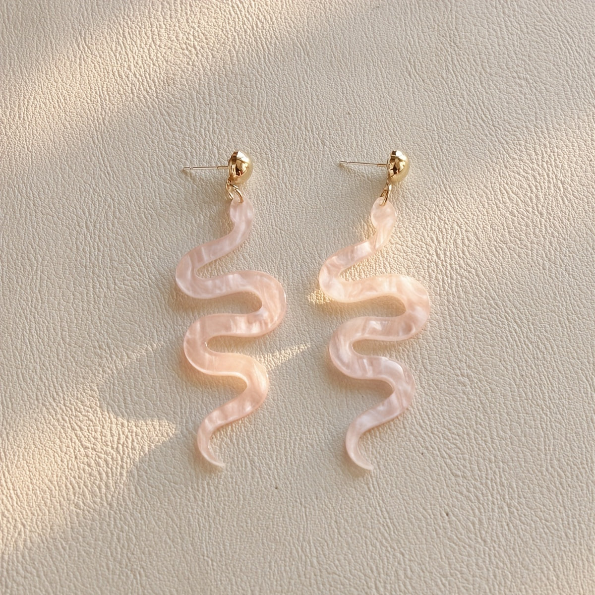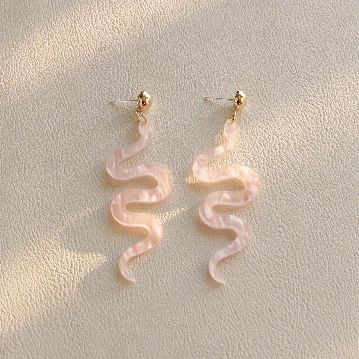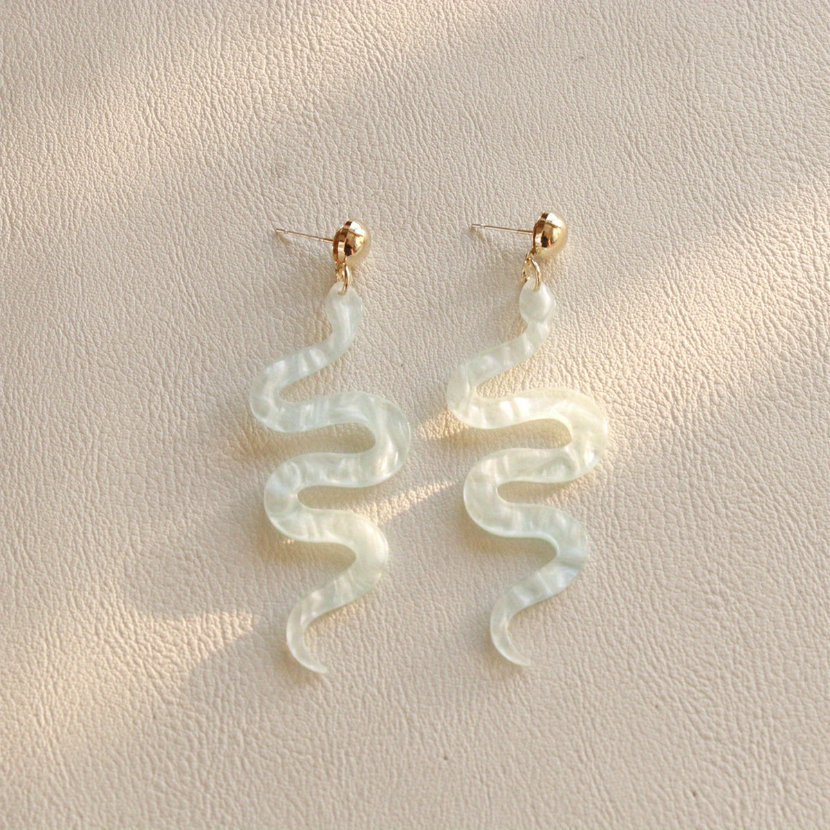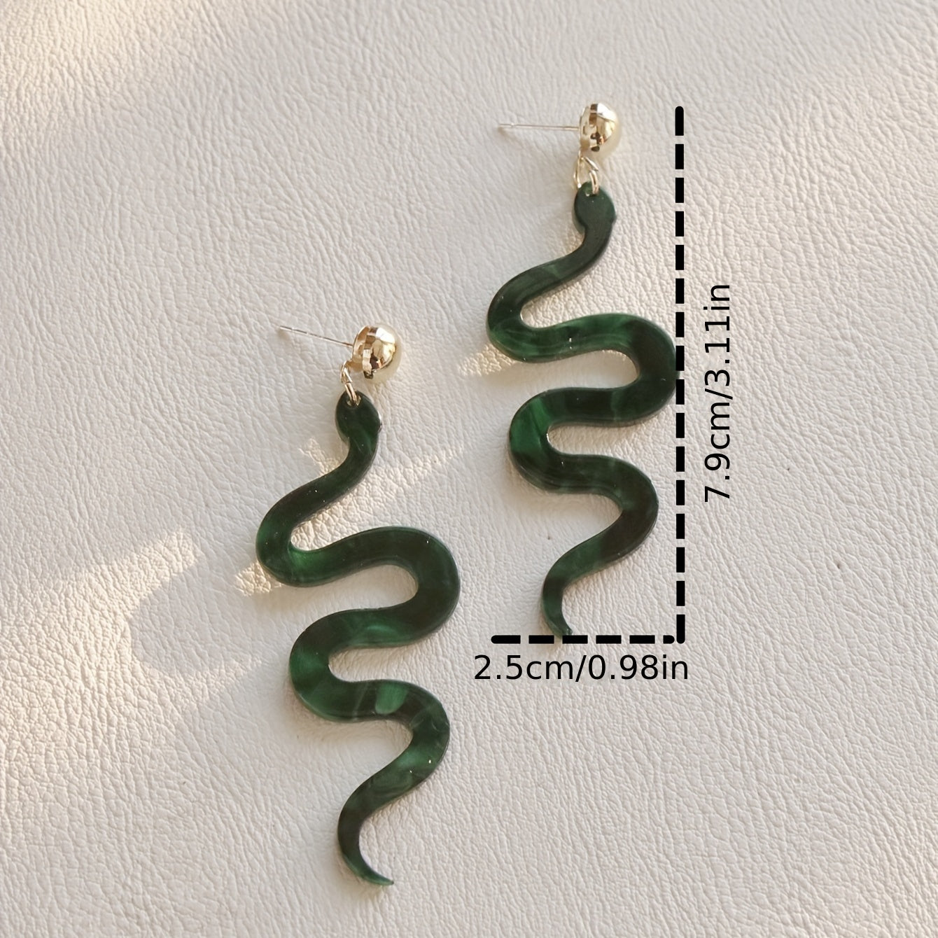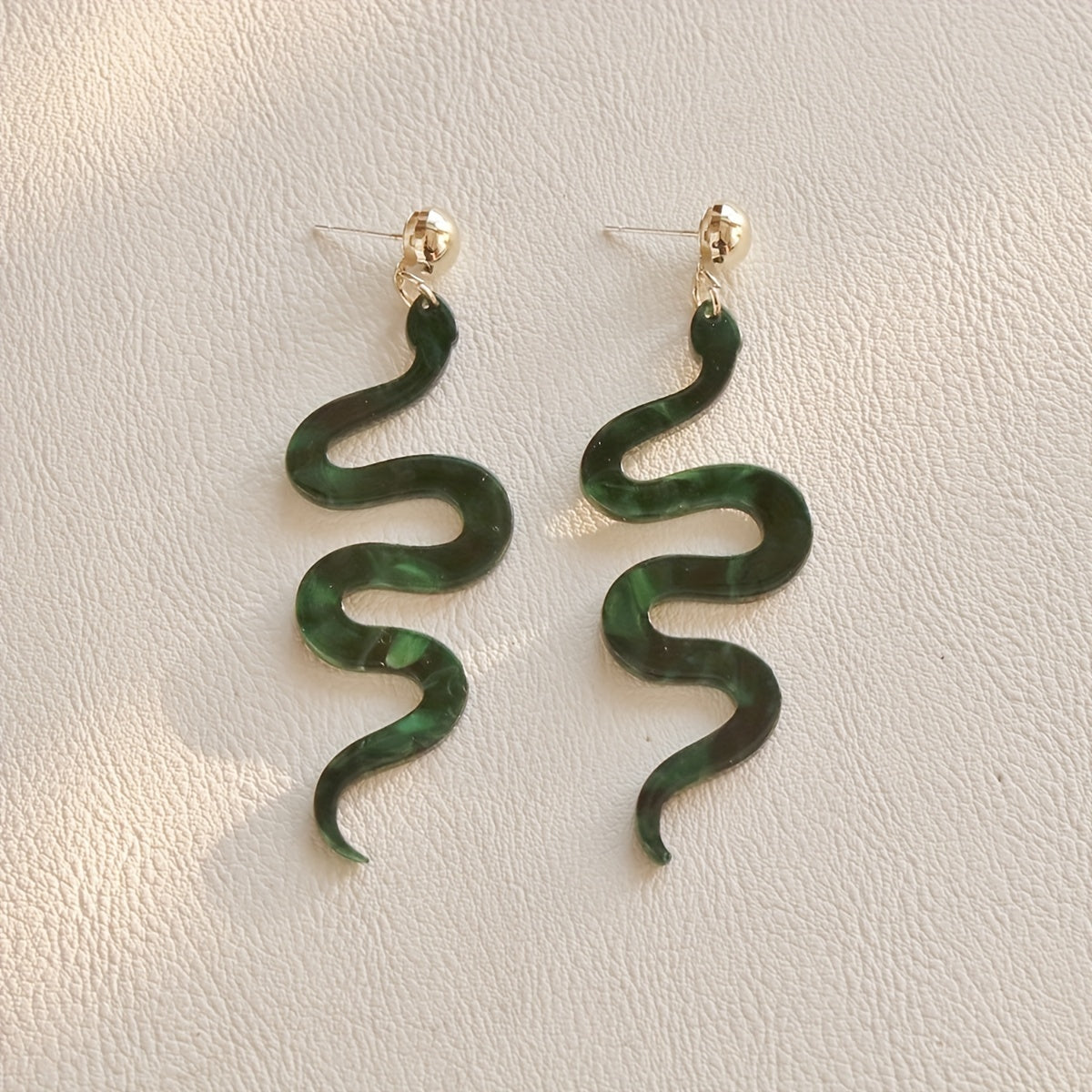 Charming green snake shaped earrings with stainless steel hooks. Ideal for women and vacation style.