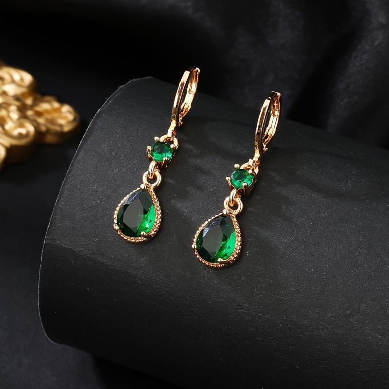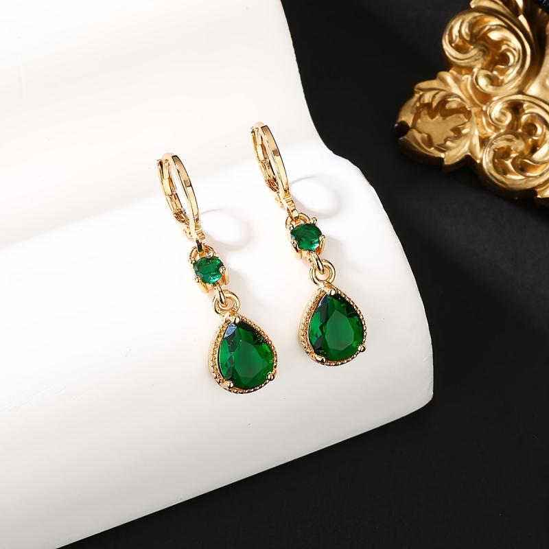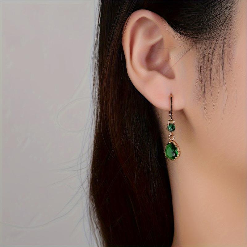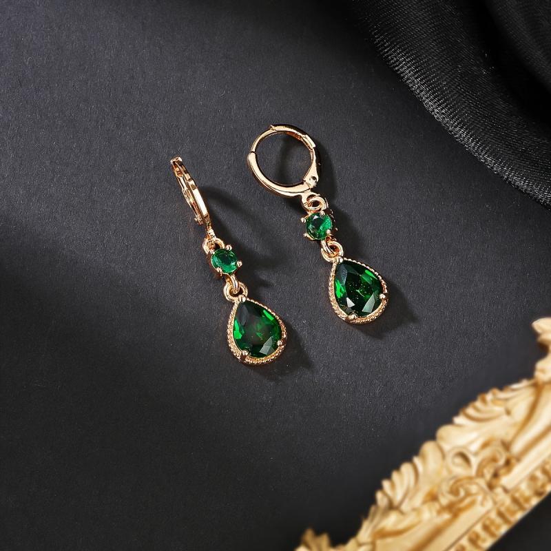 Add a touch of elegance to your look with these stunning green water drop zirconia earrings in a golden tone. Perfect for any occasion, these earrings make for a wonderful St. Patrick's Day gift.