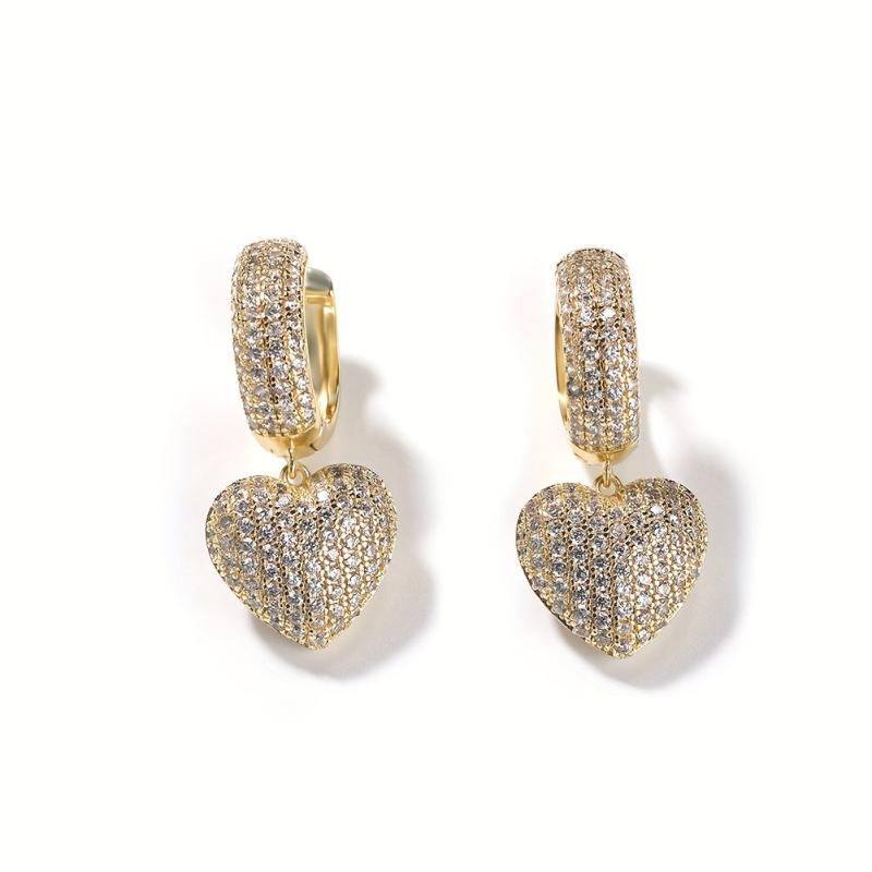 Stunning heart-shaped cubic zirconia hoop earrings made of nickel copper. Perfect for weddings, engagements, or as a gift for April birthdays.