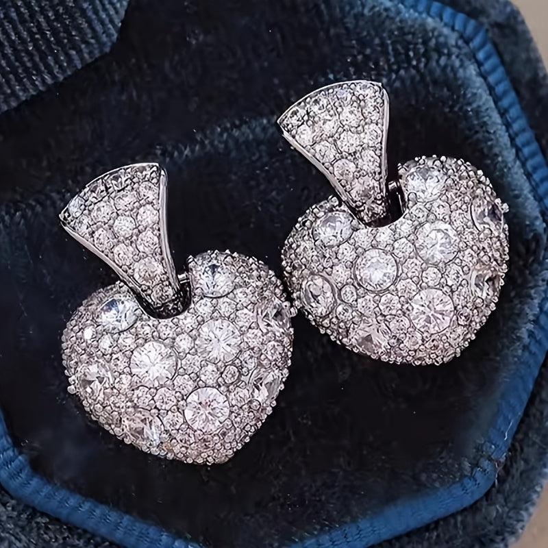 Elegant drop earrings with heart-shaped designs and sparkling zirconia stones, perfect for a touch of sweetness.