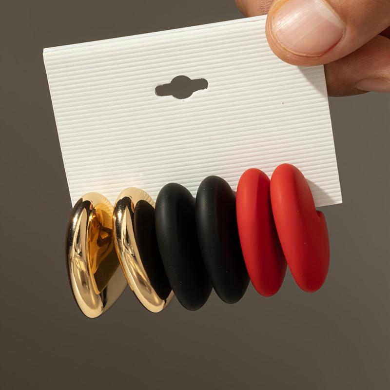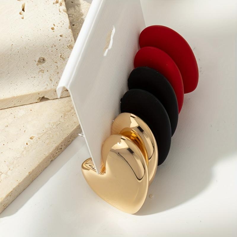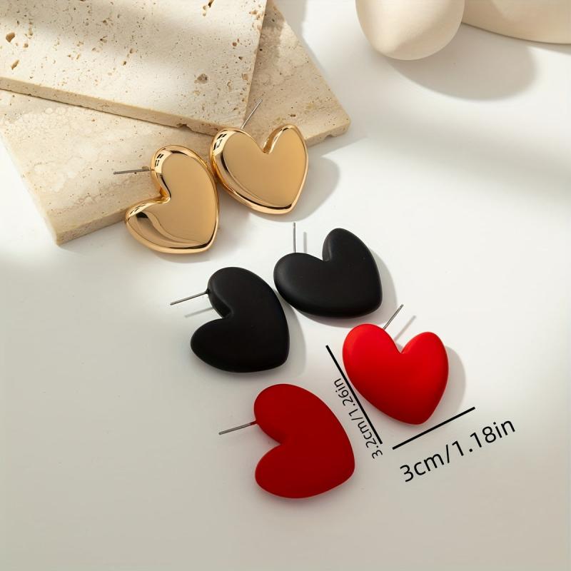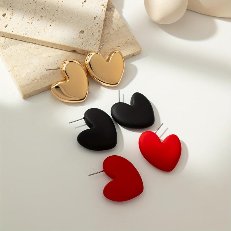 These stylish heart-shaped earrings are a perfect choice for women who want to add a touch of glamour to their look. With a mix of metallic and red finishes, these earrings are sure to make a statement. They are also a great gift idea for Valentine's Day.